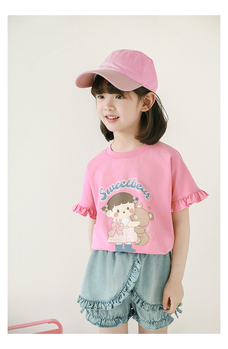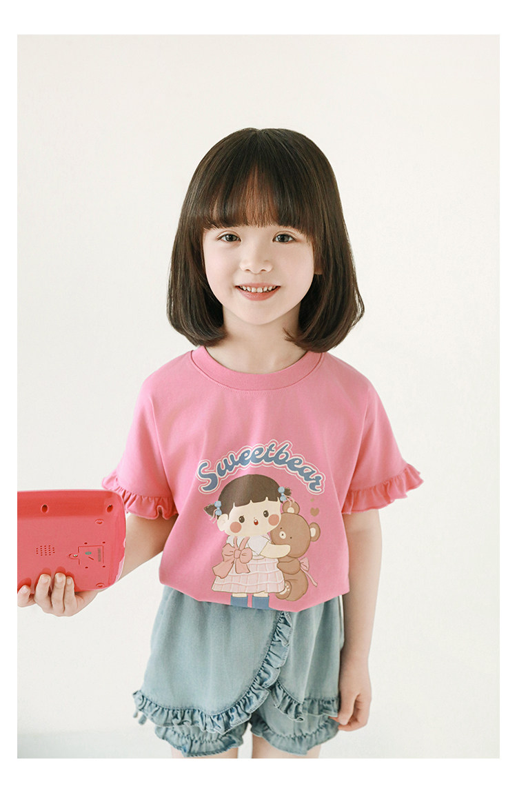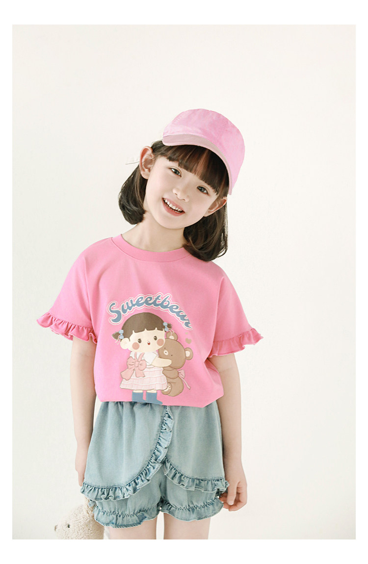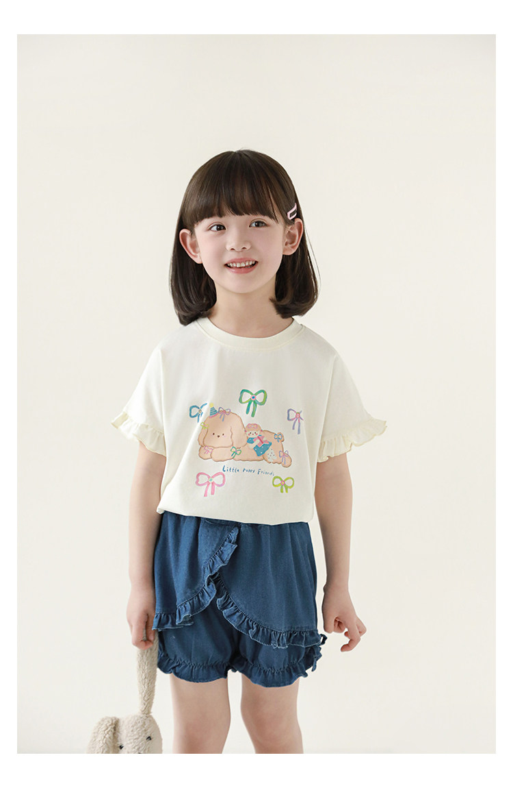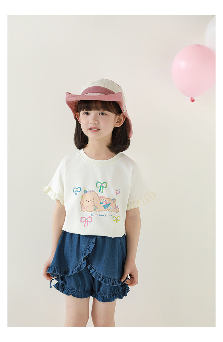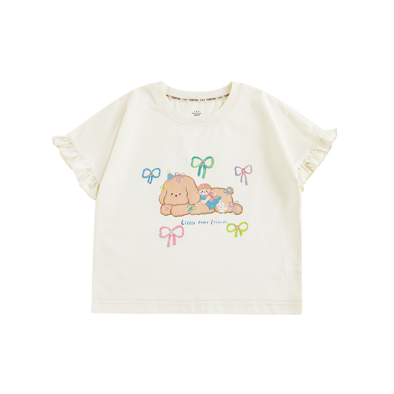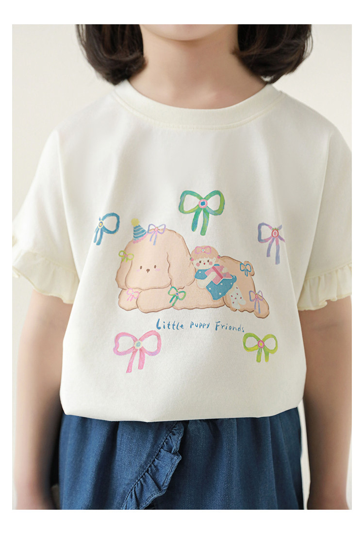 Wulibuyi 소녀 애완견 강아지 프린트 반팔 티셔츠 여름 경량 골지 라운드 넥 다용도 루즈 티셔츠스토어 가기