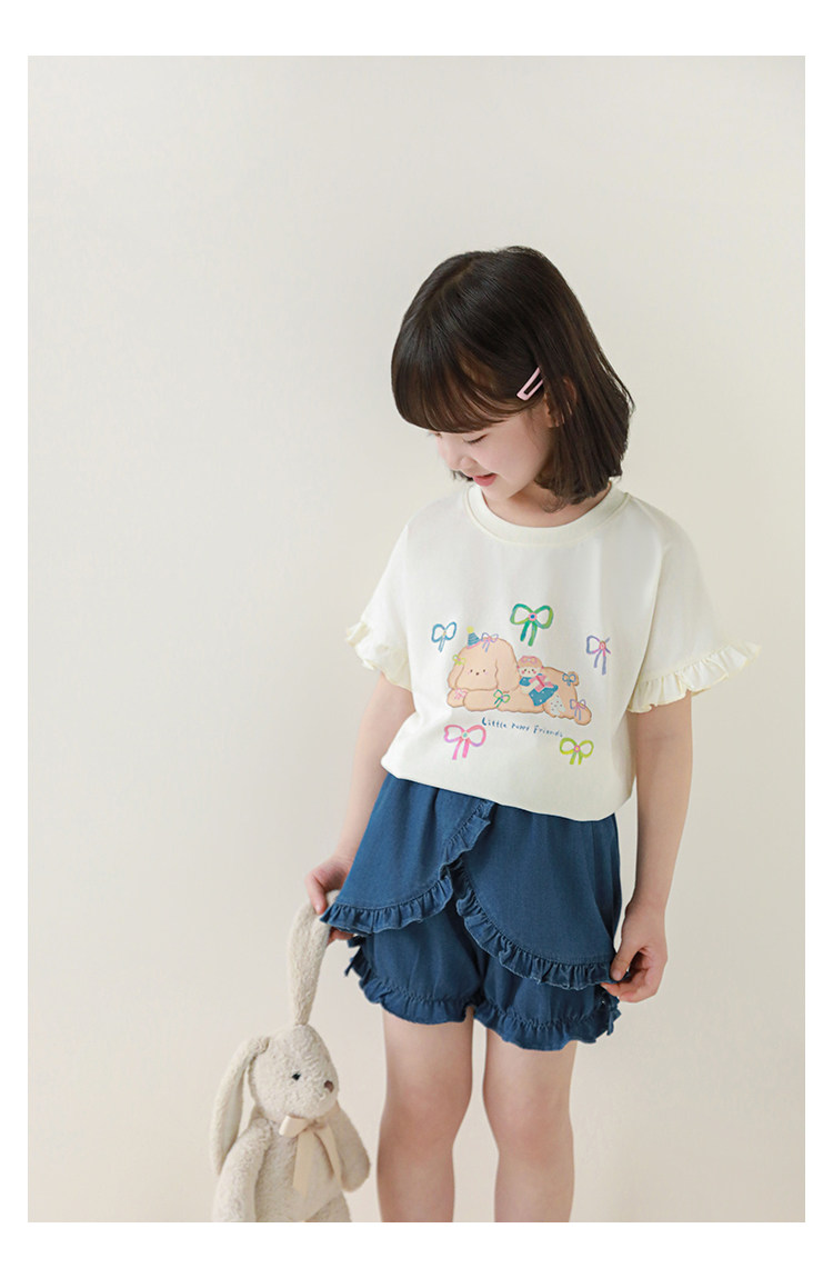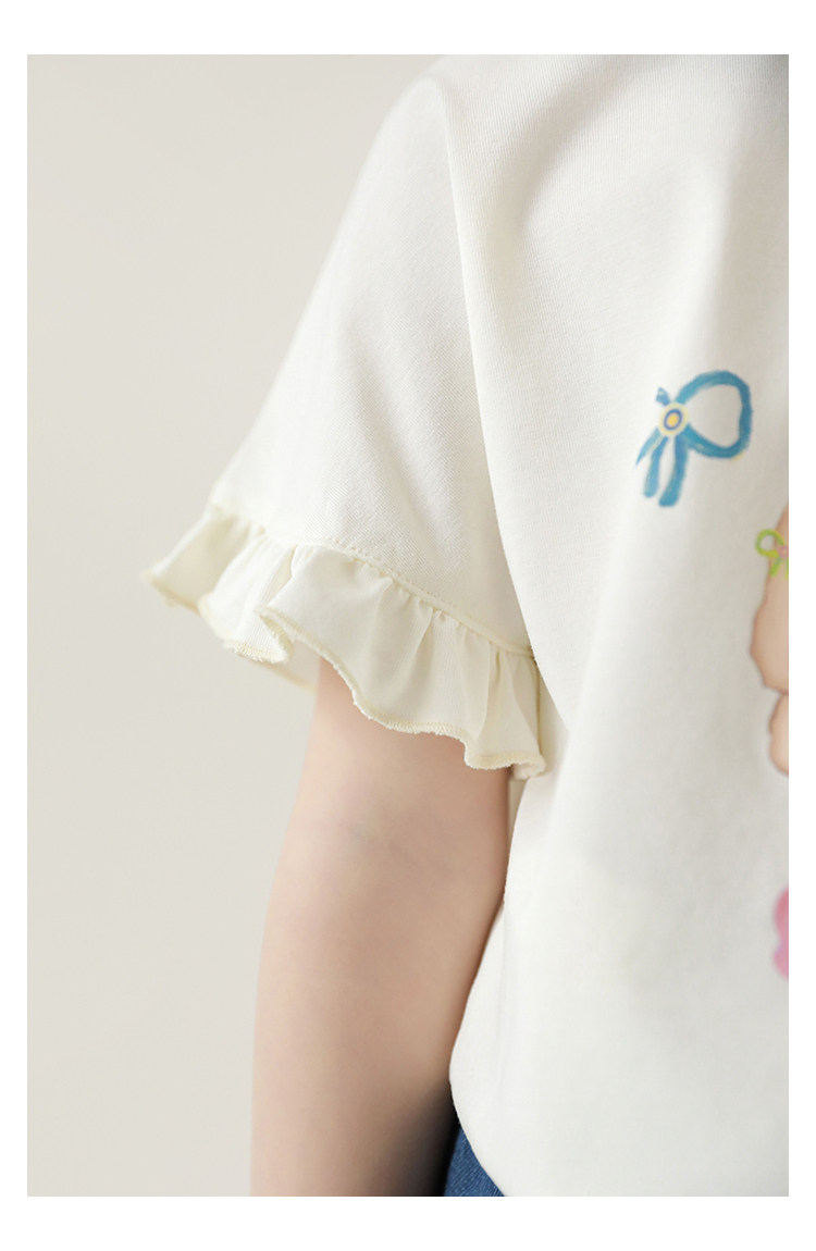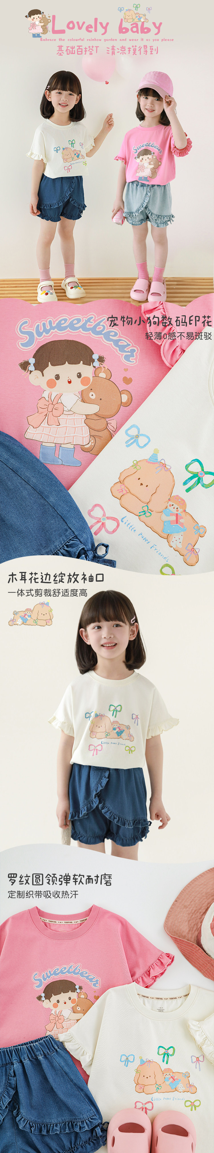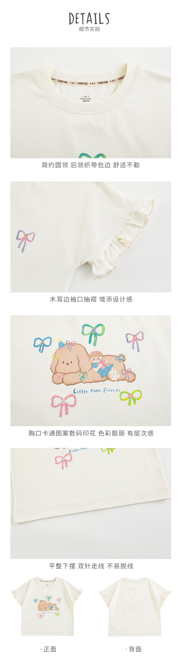 Wulibuyi 소녀 애완견 강아지 프린트 반팔 티셔츠 여름 경량 골지 라운드 넥 다용도 루즈 티셔츠