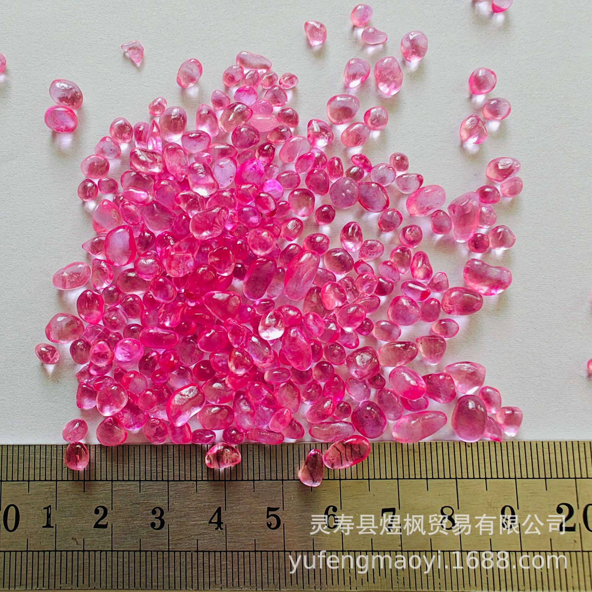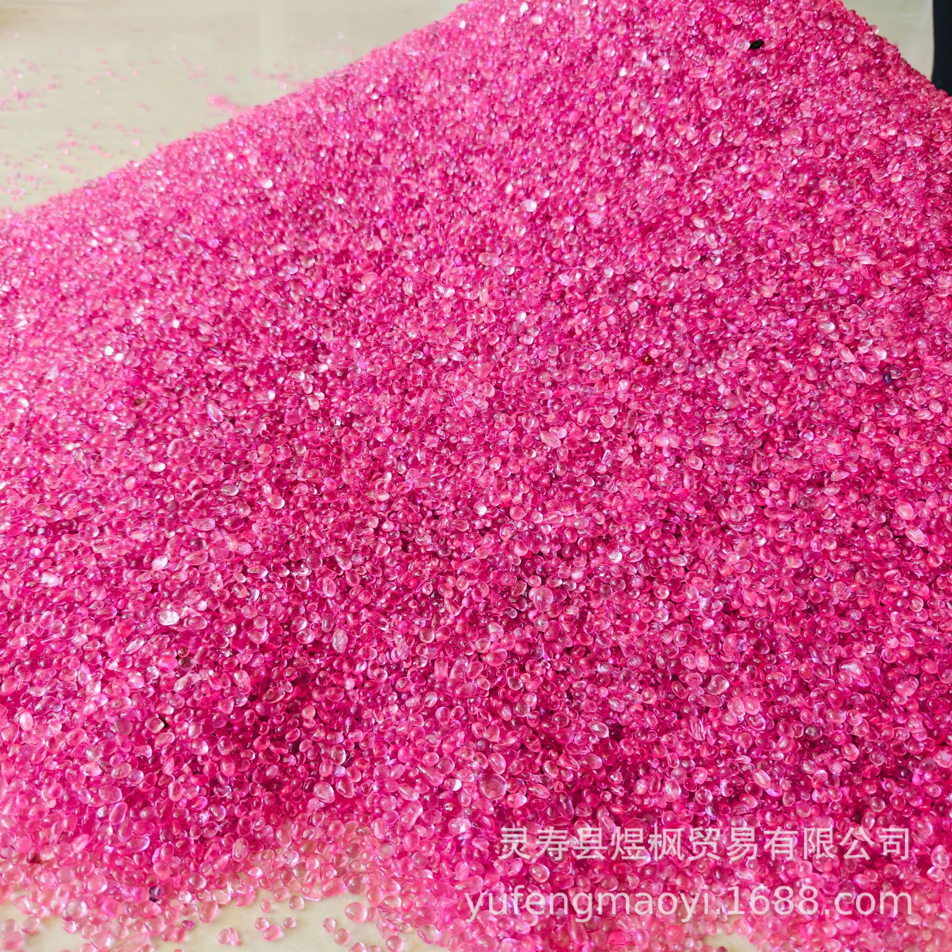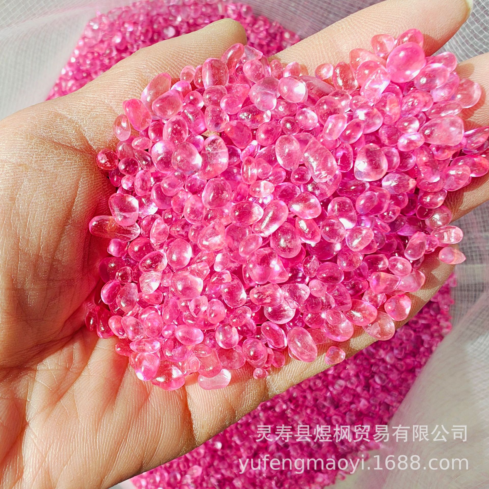 공장 직접 판매 컬러 크리스탈 유리 구슬 물고기 탱크 바닥 모래 수영장 조경 유리 모래 핑크 크리스탈 유리 돌