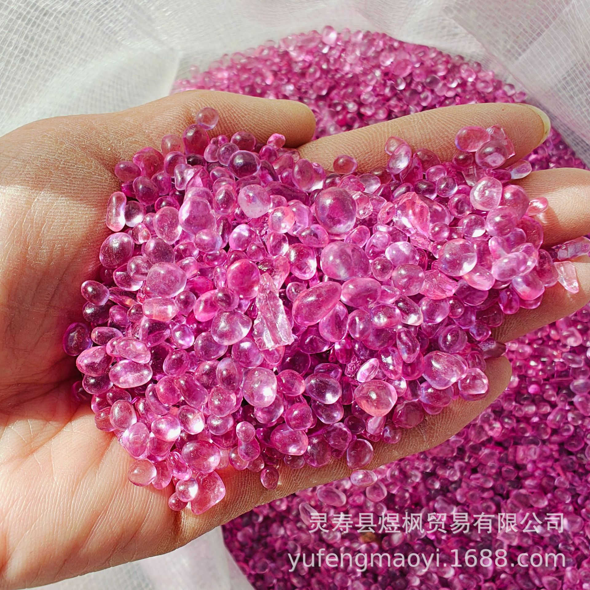 공장 직접 판매 컬러 크리스탈 유리 구슬 물고기 탱크 바닥 모래 수영장 조경 유리 모래 핑크 크리스탈 유리 돌스토어 가기