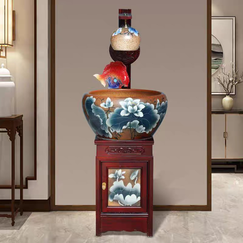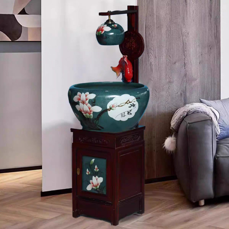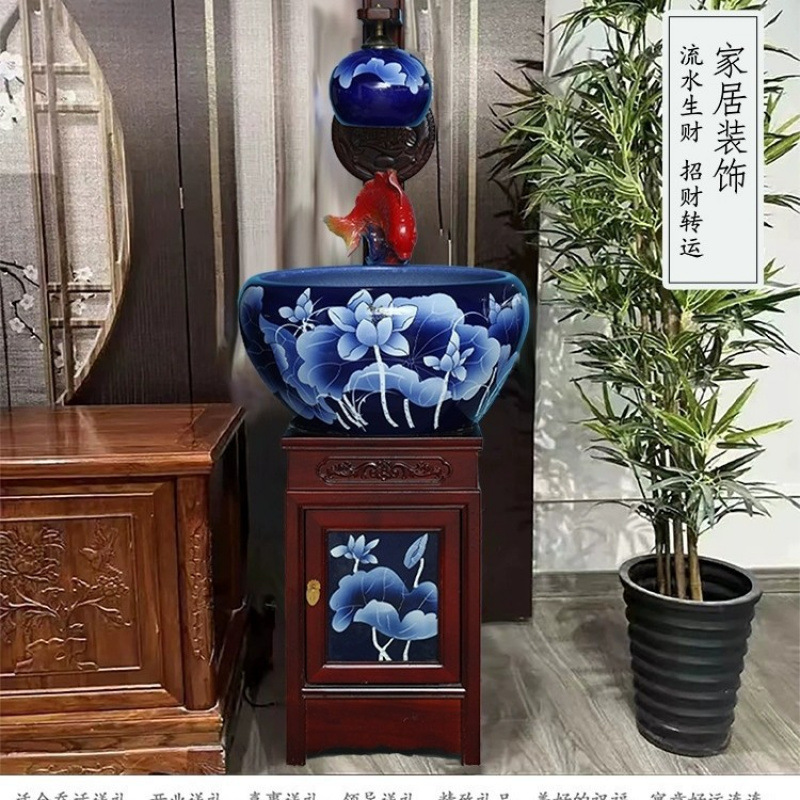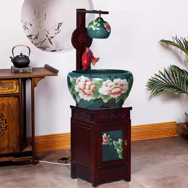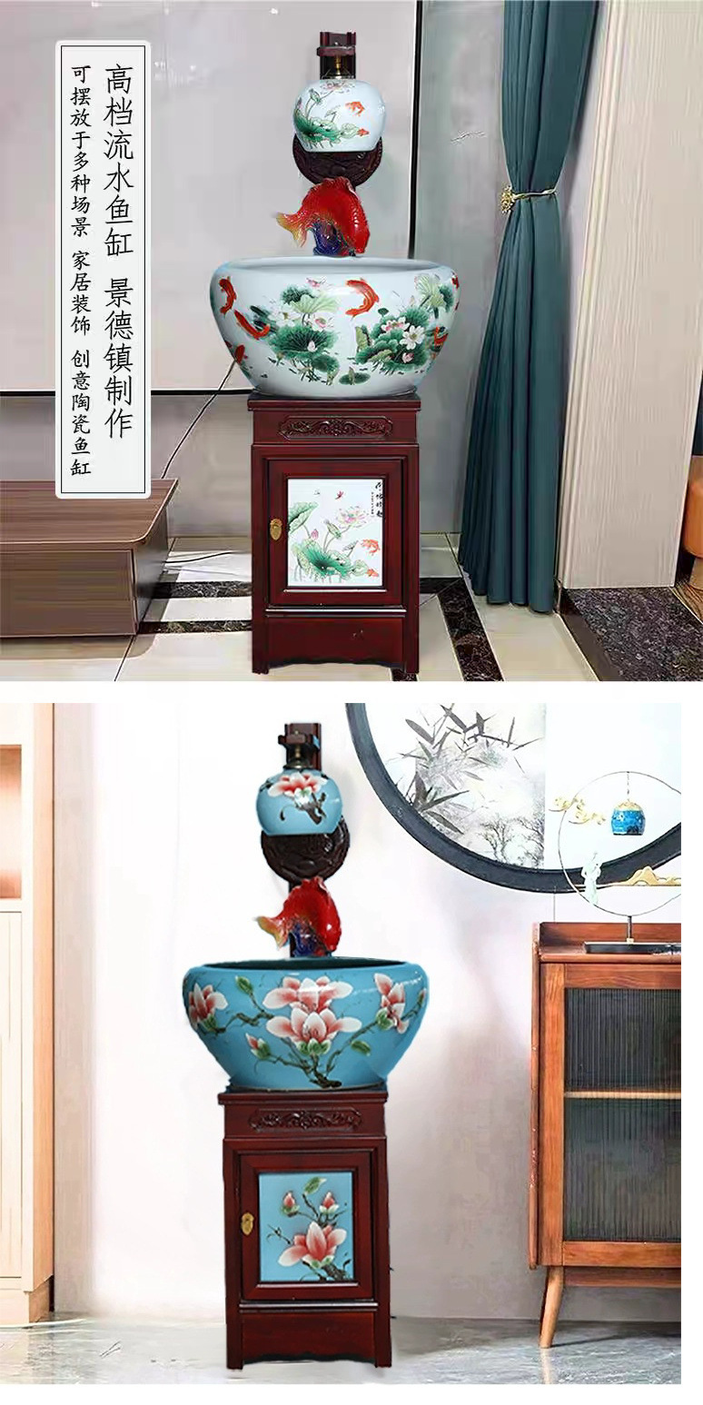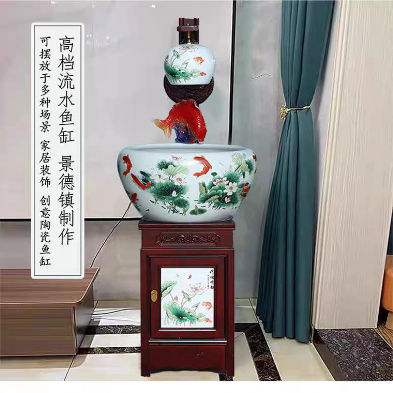 새로운 Jingdezhen 관상용 세라믹 수조 순환 물 장식품 캐비닛 유형 조경 가습기 바닥 물고기 탱크 조명스토어 가기