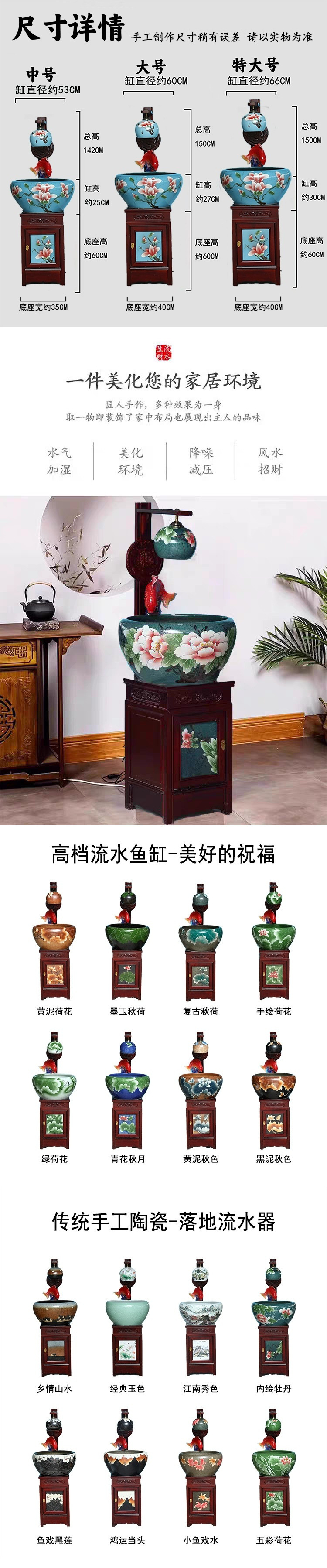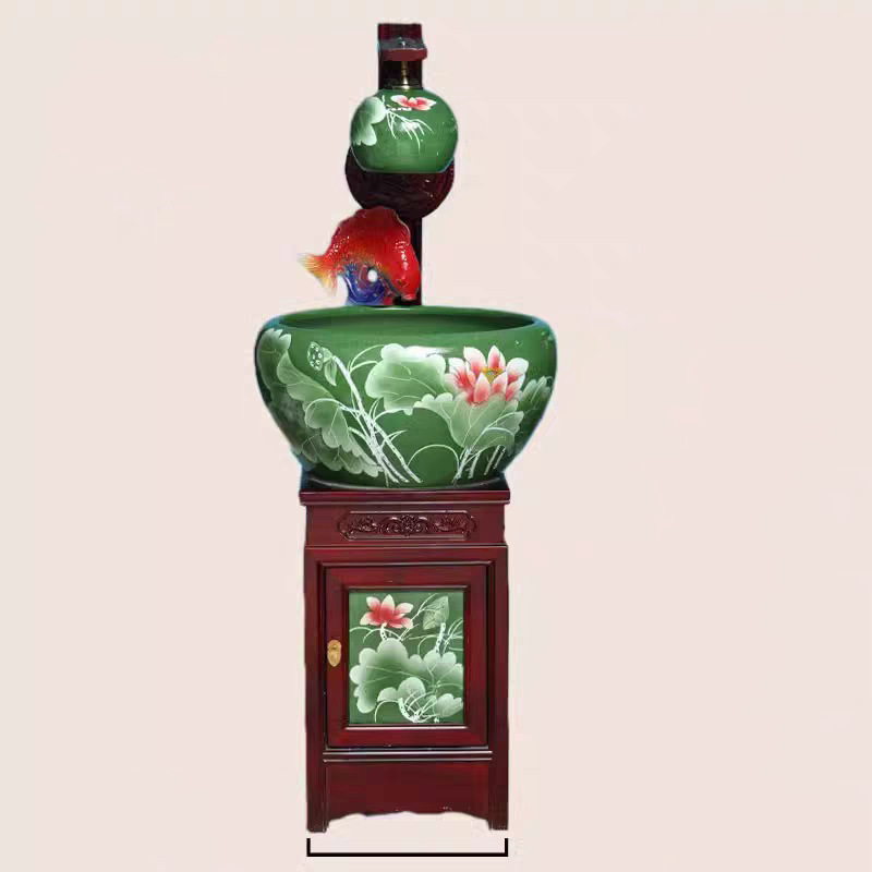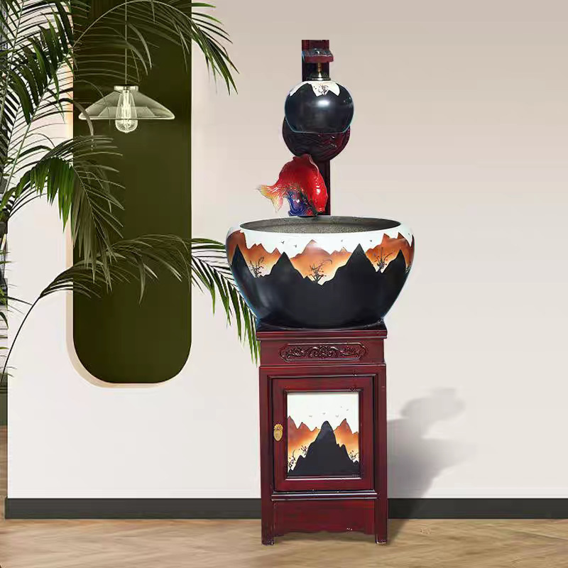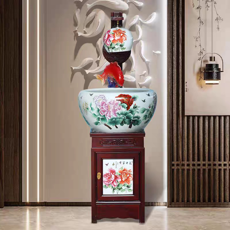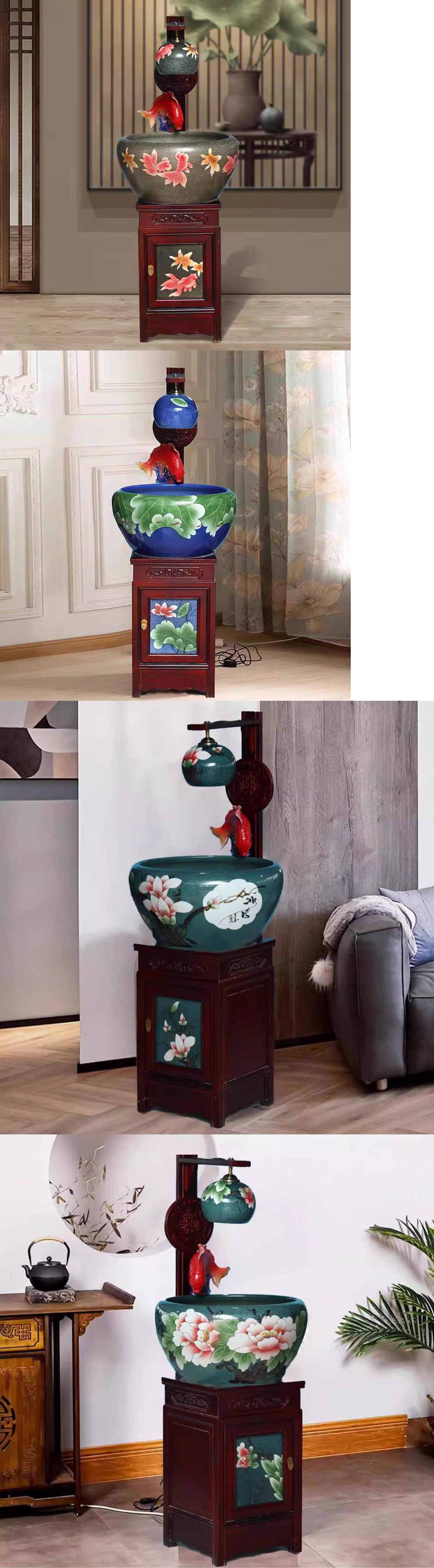 새로운 Jingdezhen 관상용 세라믹 수조 순환 물 장식품 캐비닛 유형 조경 가습기 바닥 물고기 탱크 조명스토어 가기