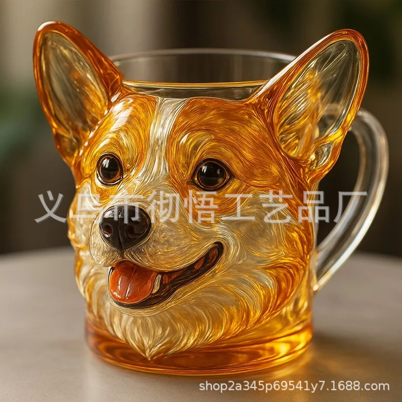 국경 간 신제품 3D 개 얼굴 유리 머그컵3D 개 얼굴 코기 유리 머그컵스토어 가기