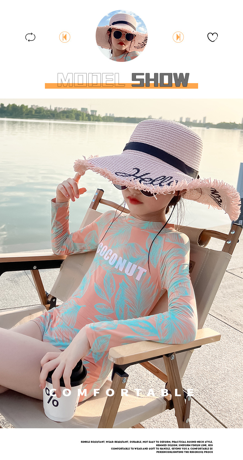 어린이 수영복 소녀 여름 2025 새로운 스타일 소녀 긴팔 수영복 중형 및 대형 어린이 자외선 차단 속건성 원피스 수영복