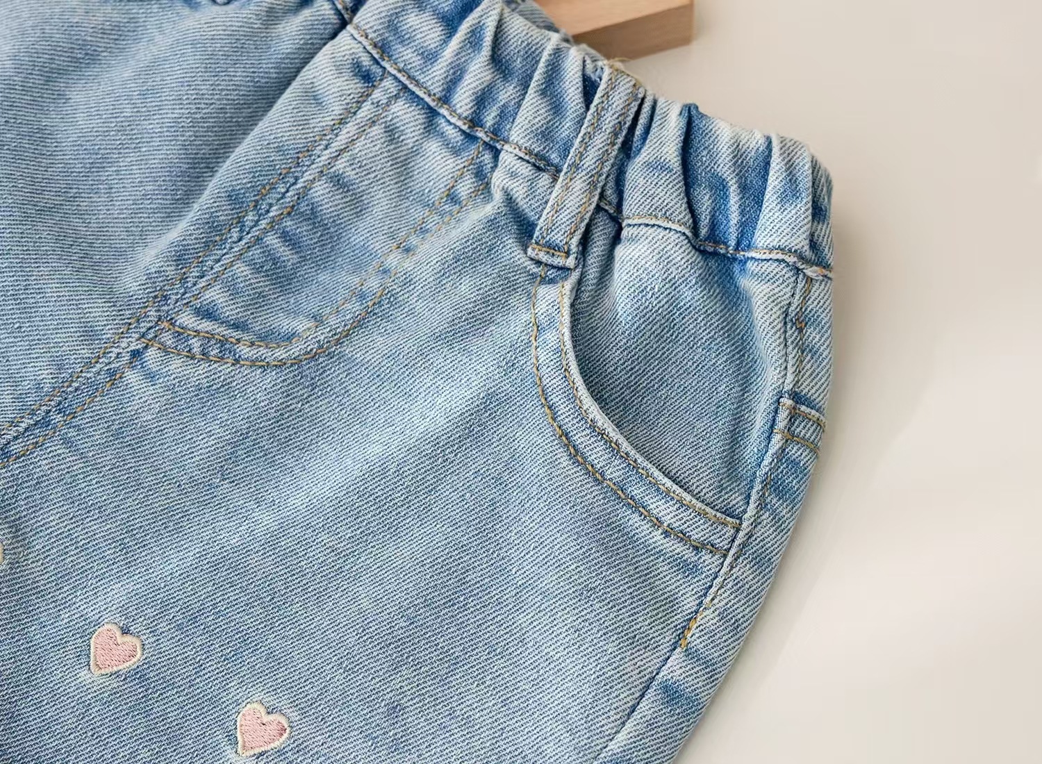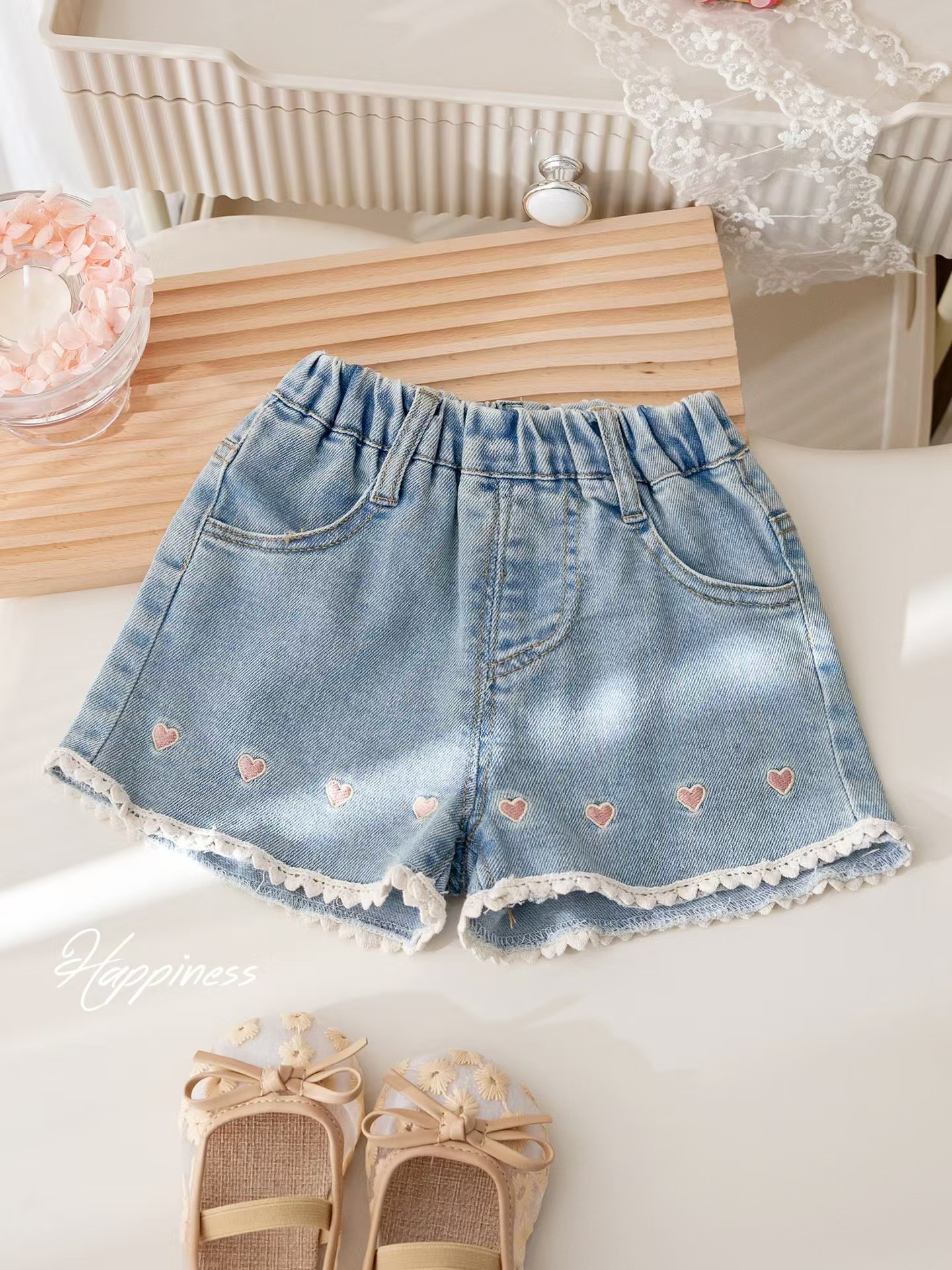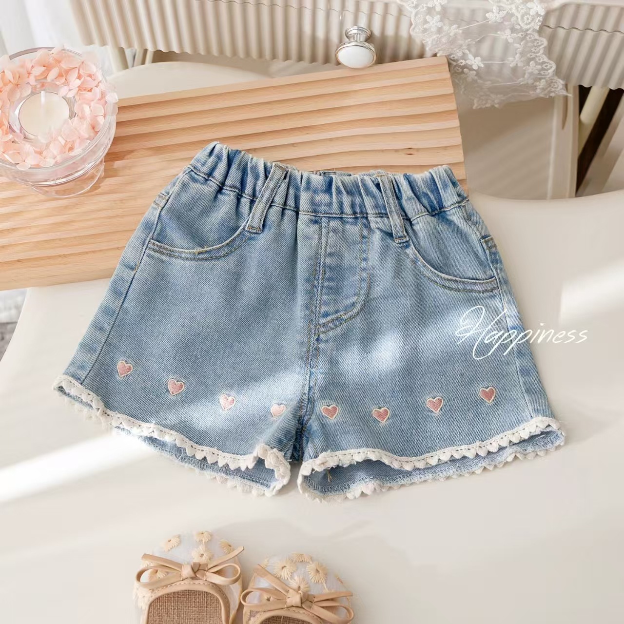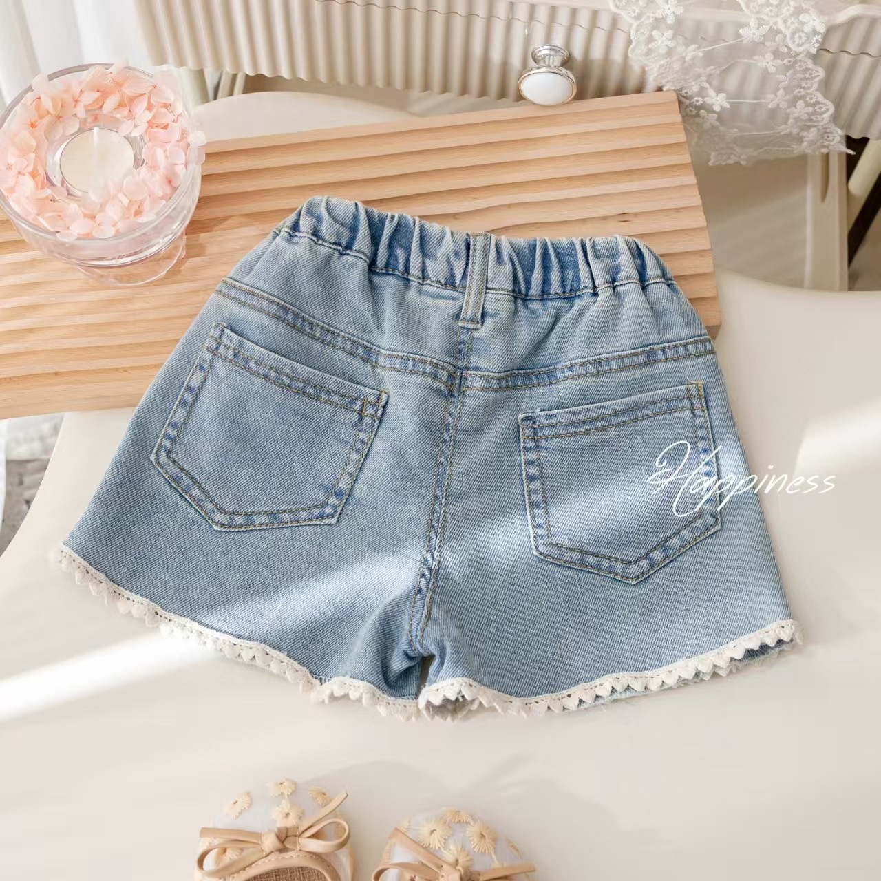 여아 데님 반바지 2025 새로운 스타일 아동용 하이 웨이스트 찢어진 중대형 아동용 외부 착용 와이드 핫 팬츠 얇은스토어 가기