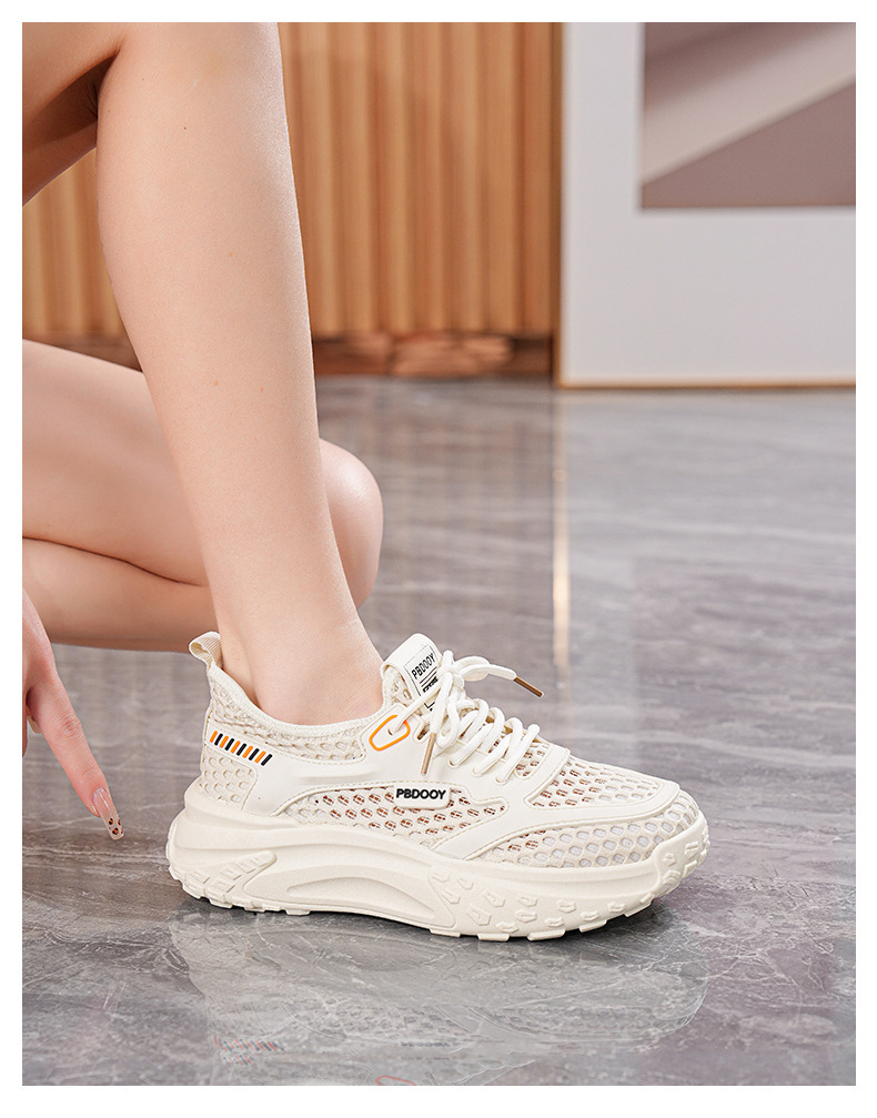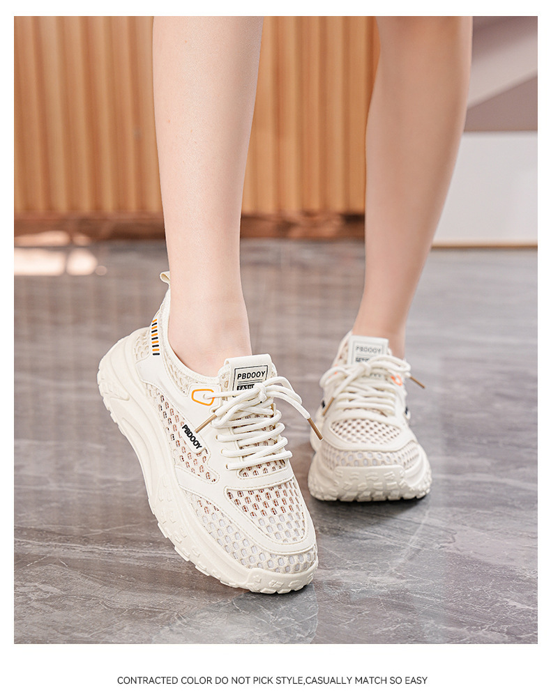 여름 여성 신발 새로운 통기성 중공 메쉬 신발 여성 한국어 버전 다목적 두꺼운 밑창 운동화 캐주얼 러닝 아빠 신발스토어 가기