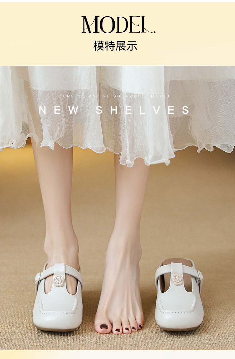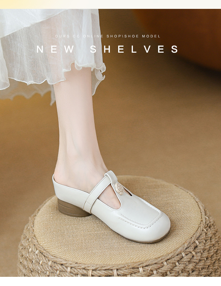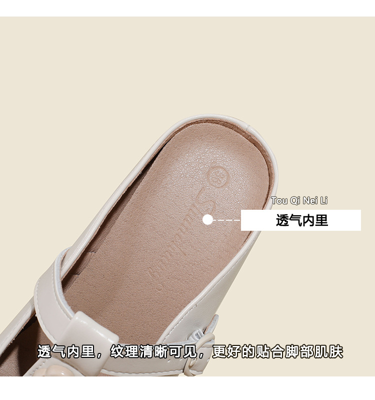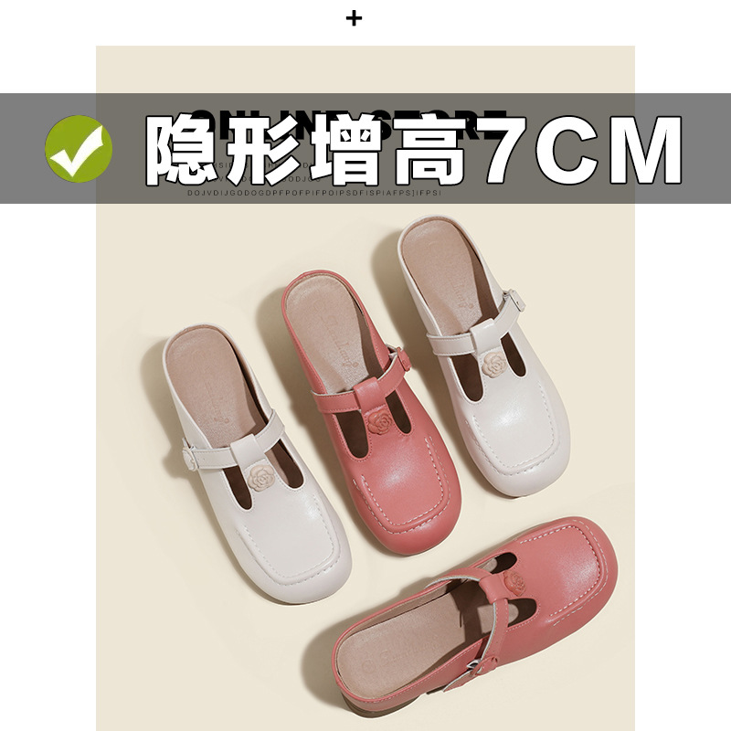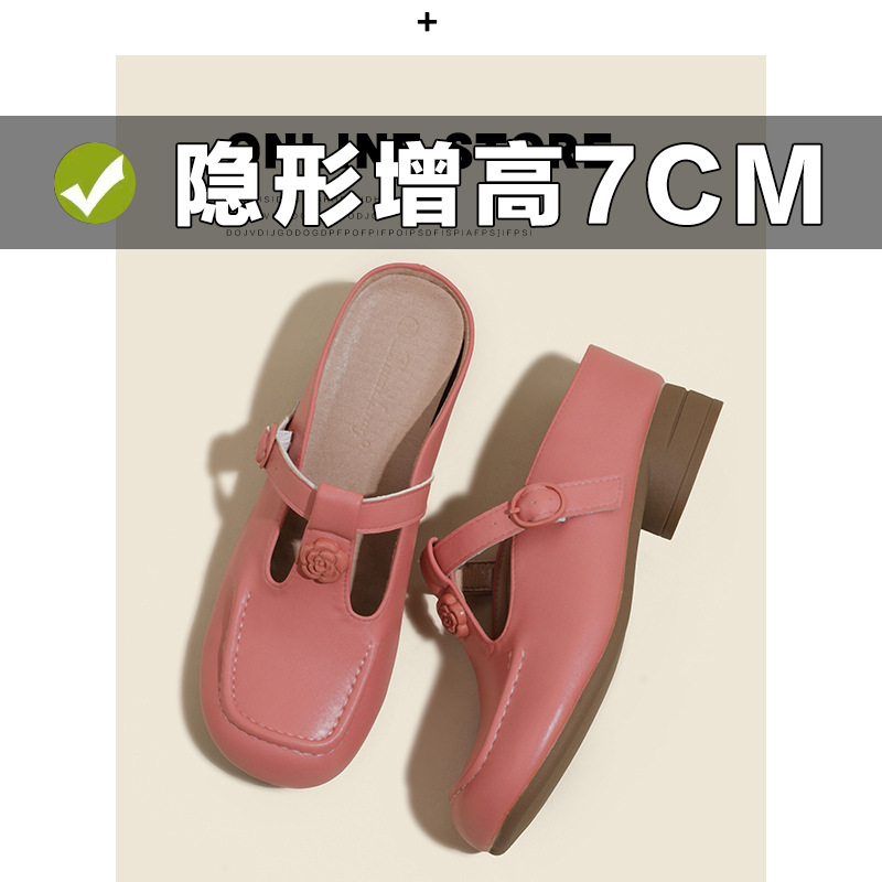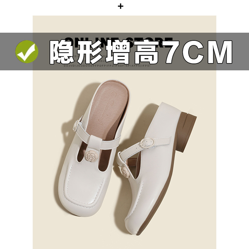 두꺼운 굽의 발가락 반슬리퍼 샌들, 내부 높이 7CM, 여름 신작, 다용도 T자형 동백, 소형 사이즈 3233 사이즈 화이트스토어 가기