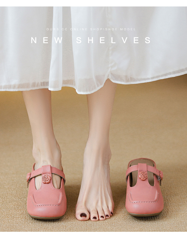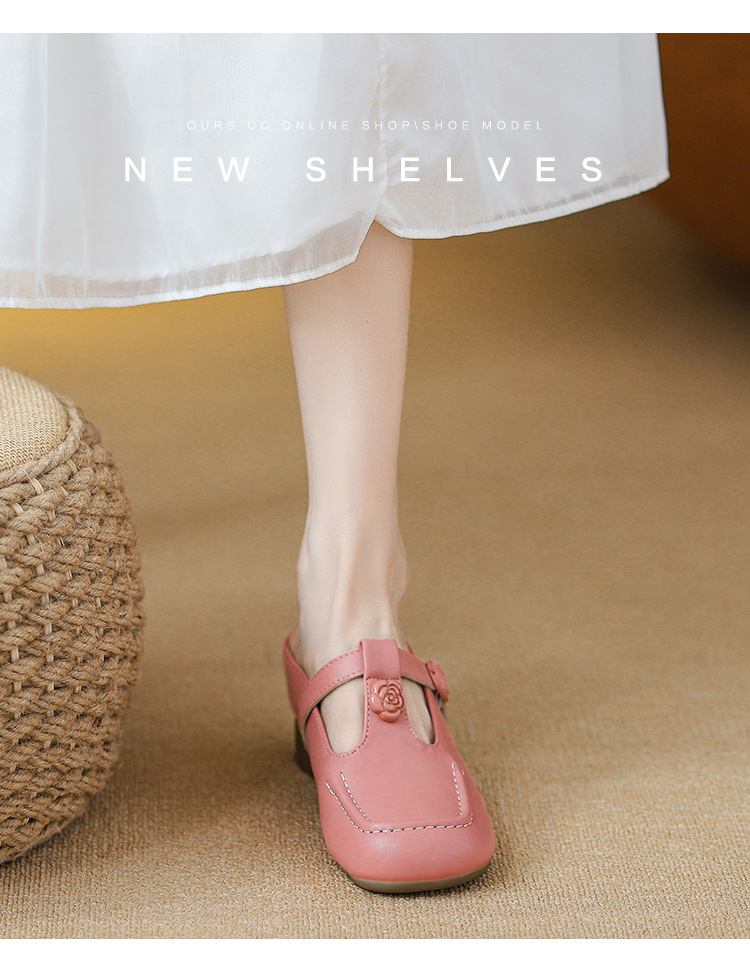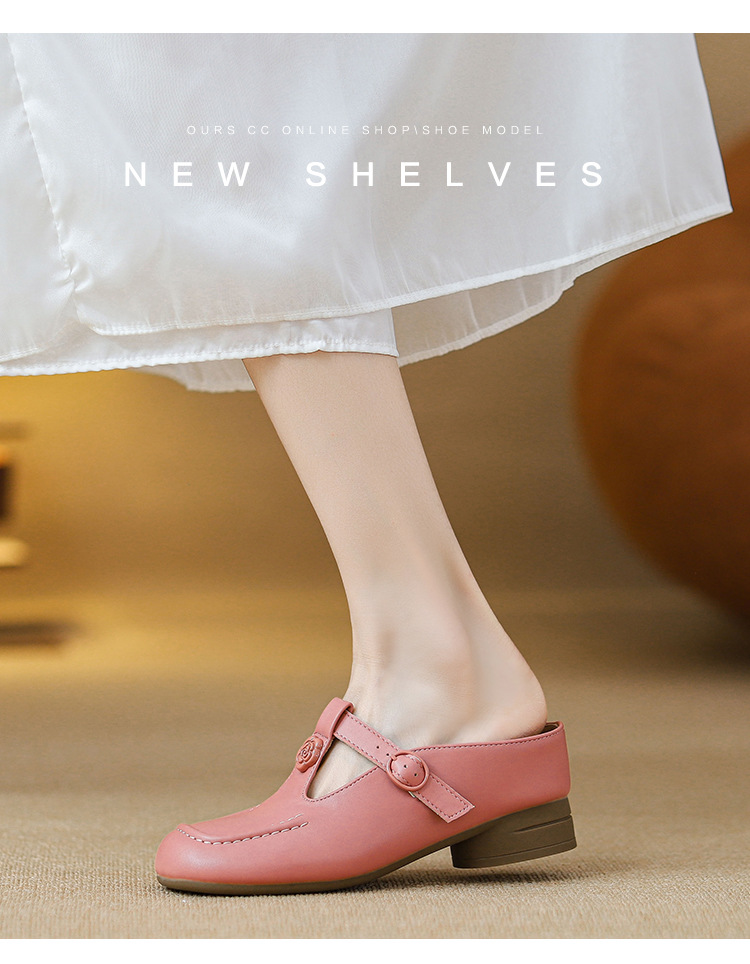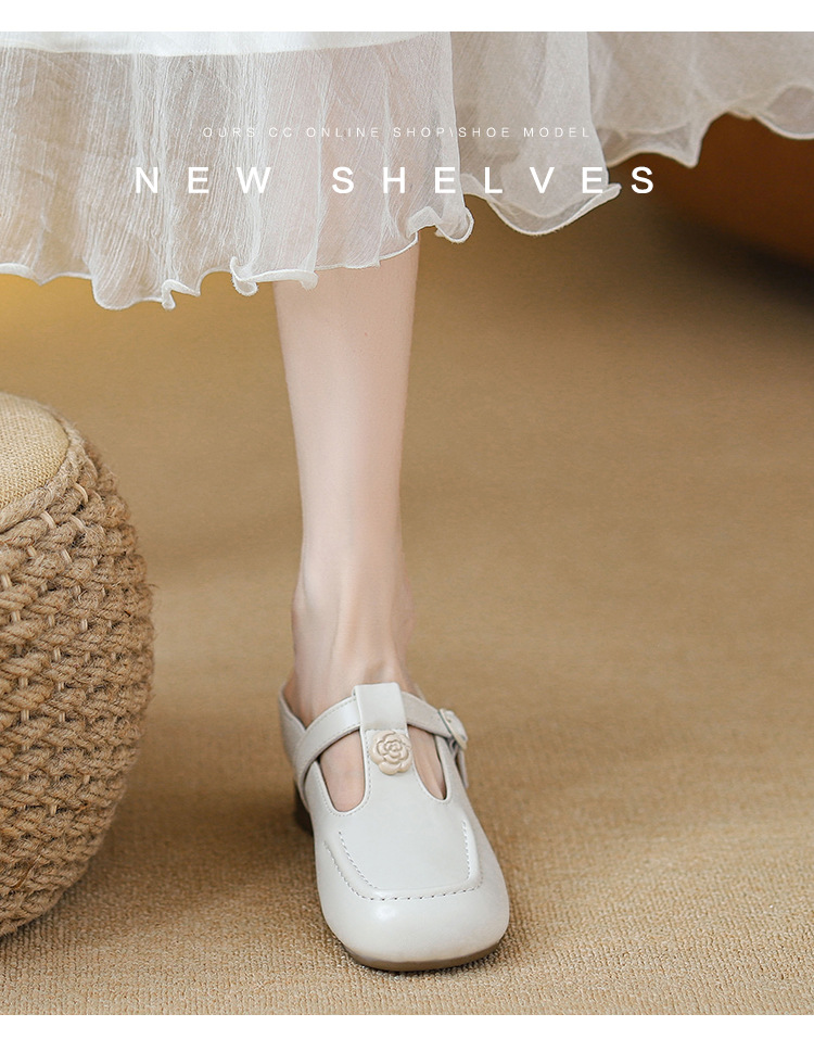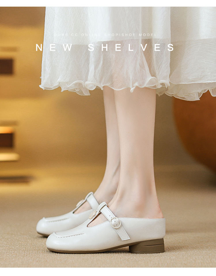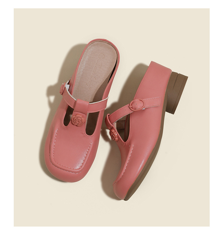 두꺼운 굽의 발가락 반슬리퍼 샌들, 내부 높이 7CM, 여름 신작, 다용도 T자형 동백, 소형 사이즈 3233 사이즈 화이트스토어 가기