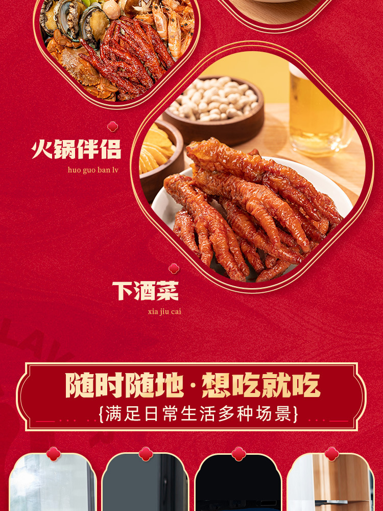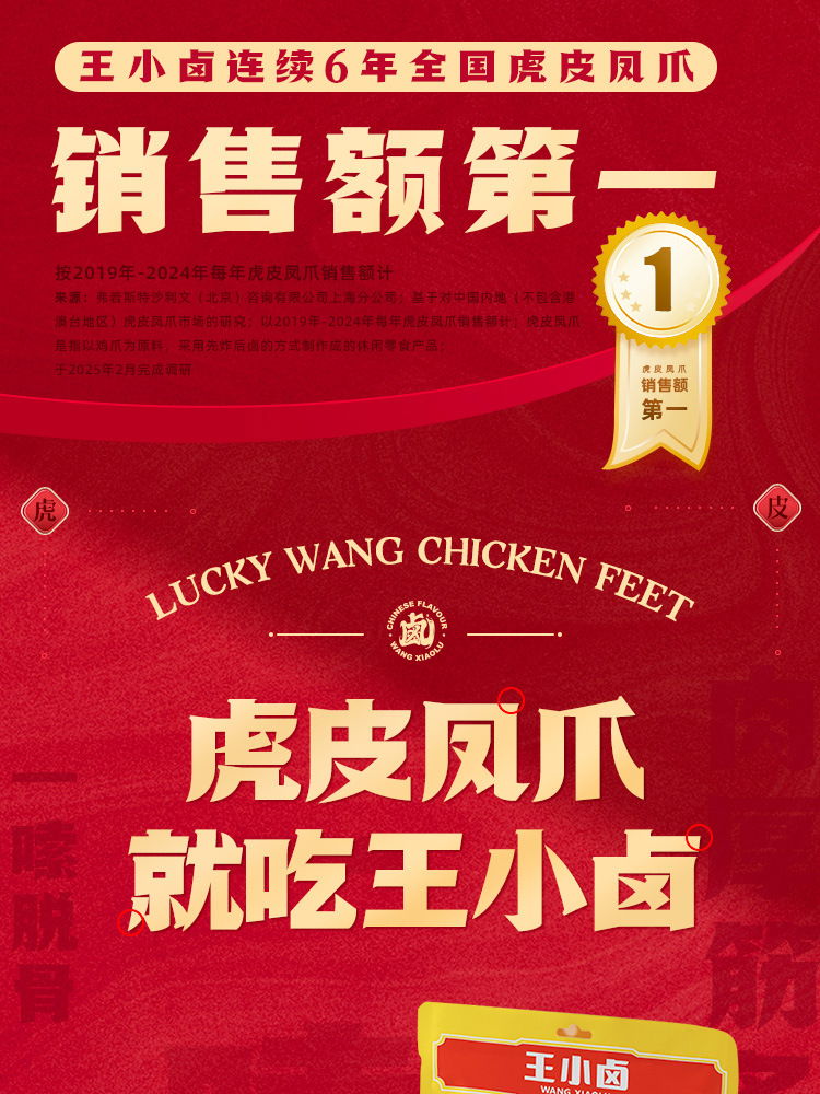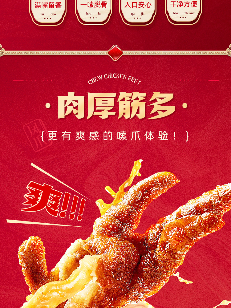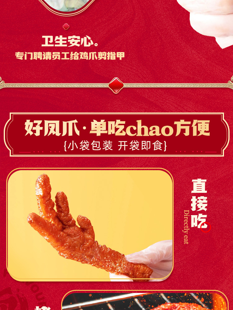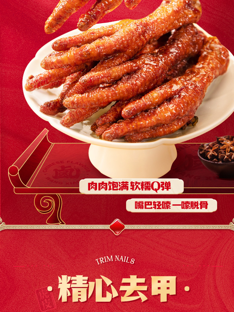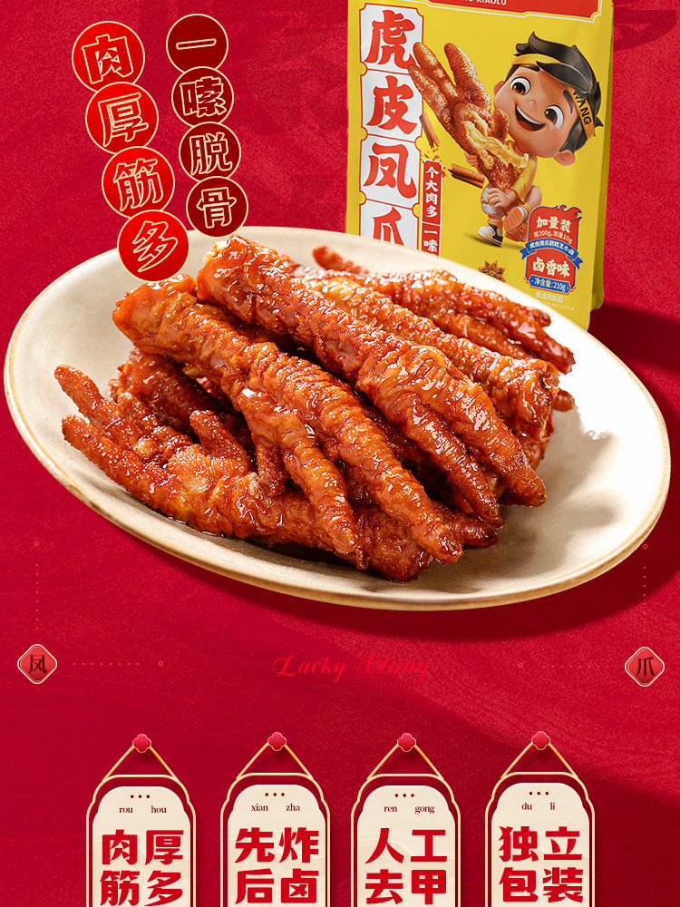 【도매】왕샤오루 호피풍자(닭발) 210g 매콤달콤한 닭발 육류 스낵 대용량 바로 먹을 수 있는 캐주얼 간식