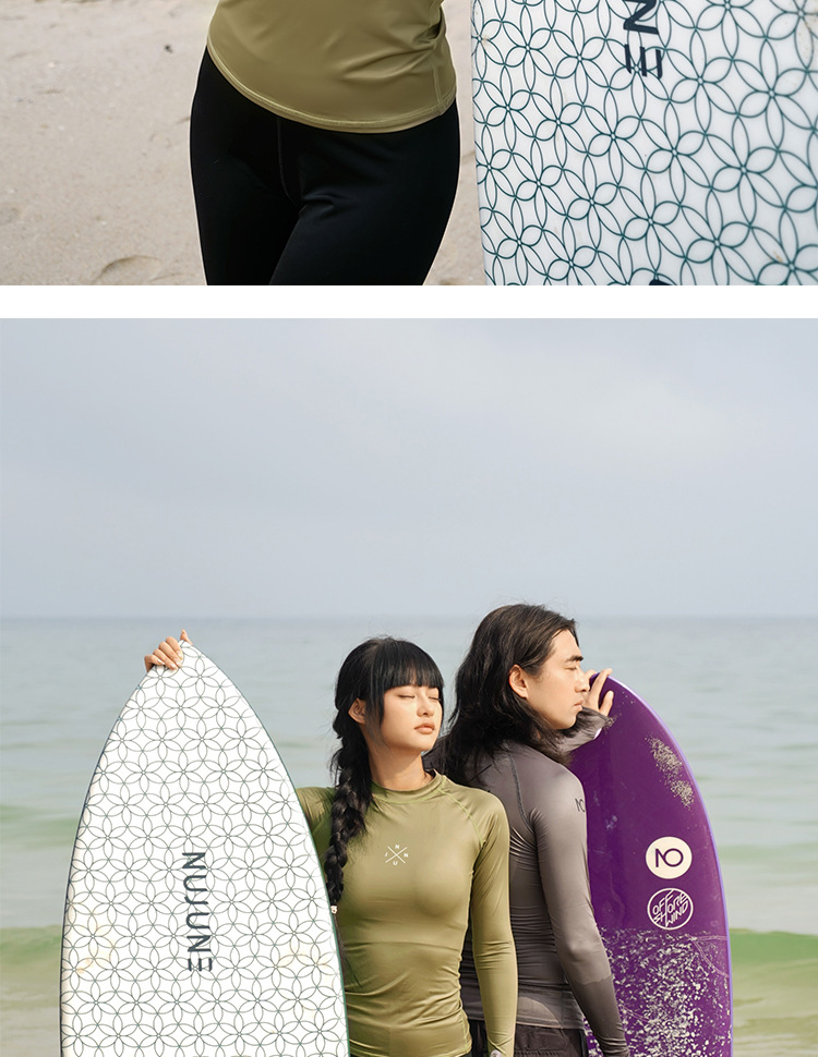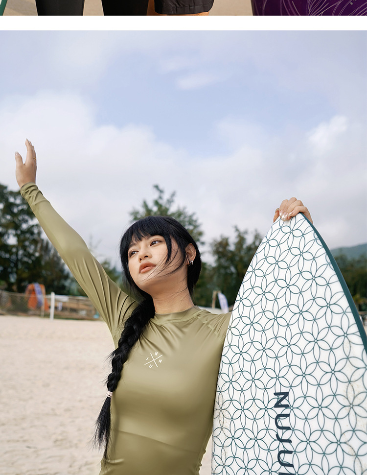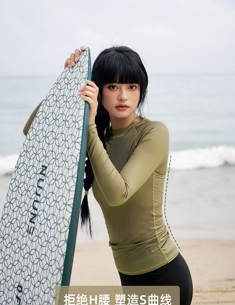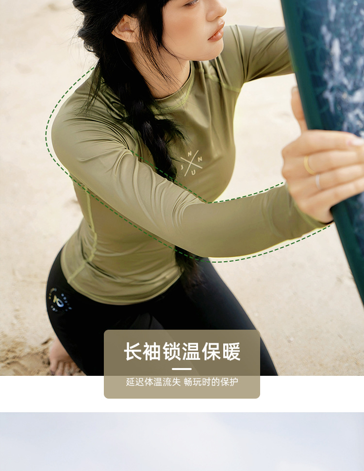 NuJune2025 새로운 여성 긴팔 다이빙 세트 서핑 수영복 선스크린 통기성 슬림핏 스플릿 수영복 슬리밍스토어 가기