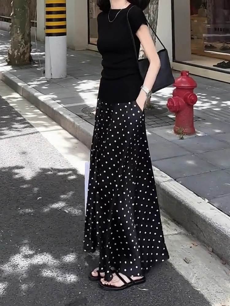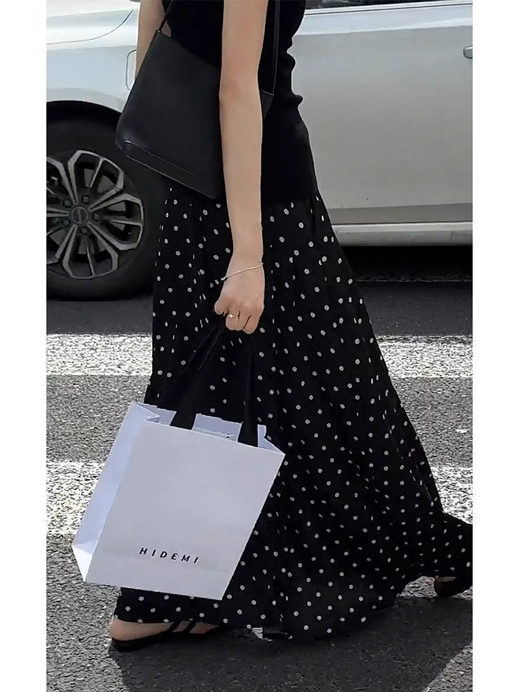 여성용 플러스 사이즈 여름 폴카 도트 스커트, 패셔너블하고 인기 있는 틈새 기질, 고급스럽고 슬림한 블랙 롱 스커트스토어 가기