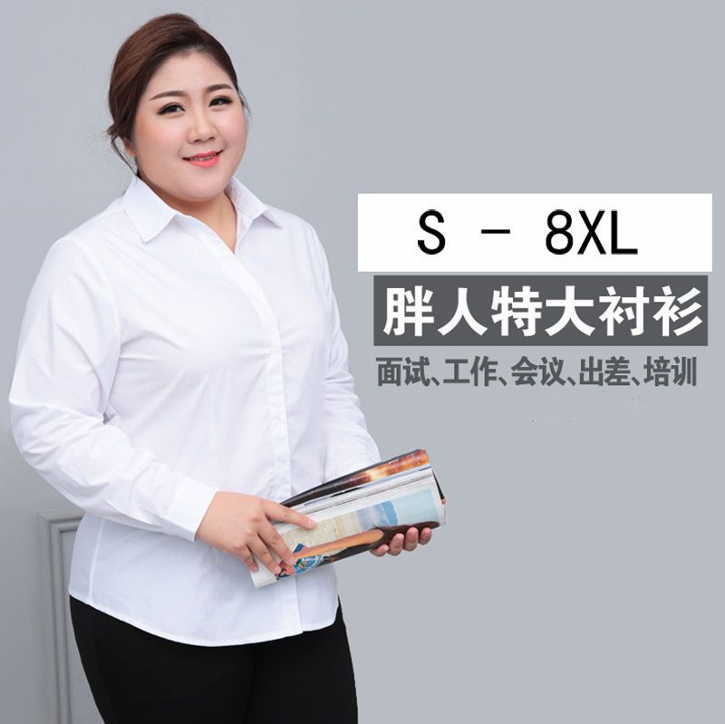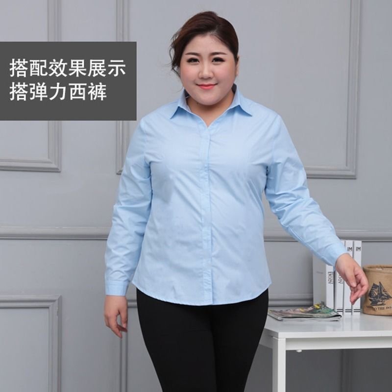 여성을위한 봄 새로운 스타일 뚱뚱한 mm 플러스 사이즈 흰색 셔츠 긴 소매 플러스 뚱뚱한 느슨한 100kg 전문 작업복 작업복스토어 가기