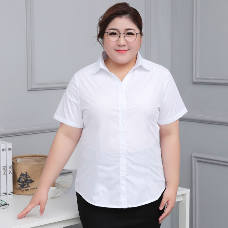 여성을위한 봄 새로운 스타일 뚱뚱한 mm 플러스 사이즈 흰색 셔츠 긴 소매 플러스 뚱뚱한 느슨한 100kg 전문 작업복 작업복