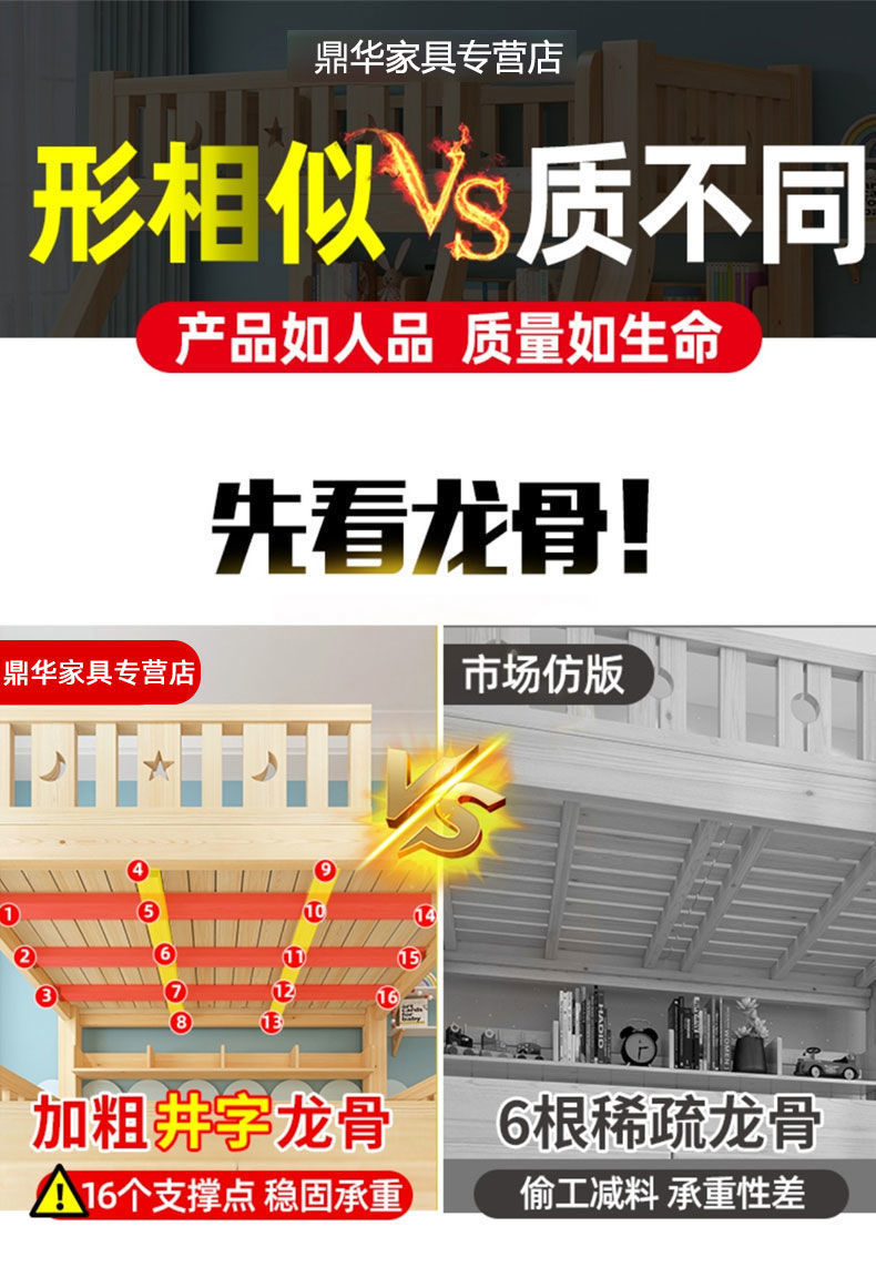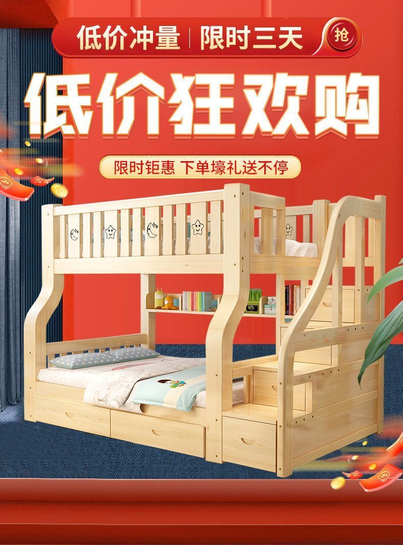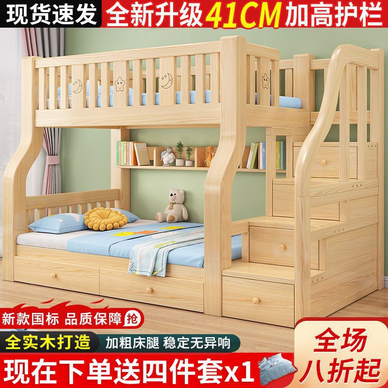 단단한 나무 이층 침대, 두껍고 높은 다기능 이층 침대 조합 침대, 높낮이 침대, 공주 침대, 어린이 L^스토어 가기