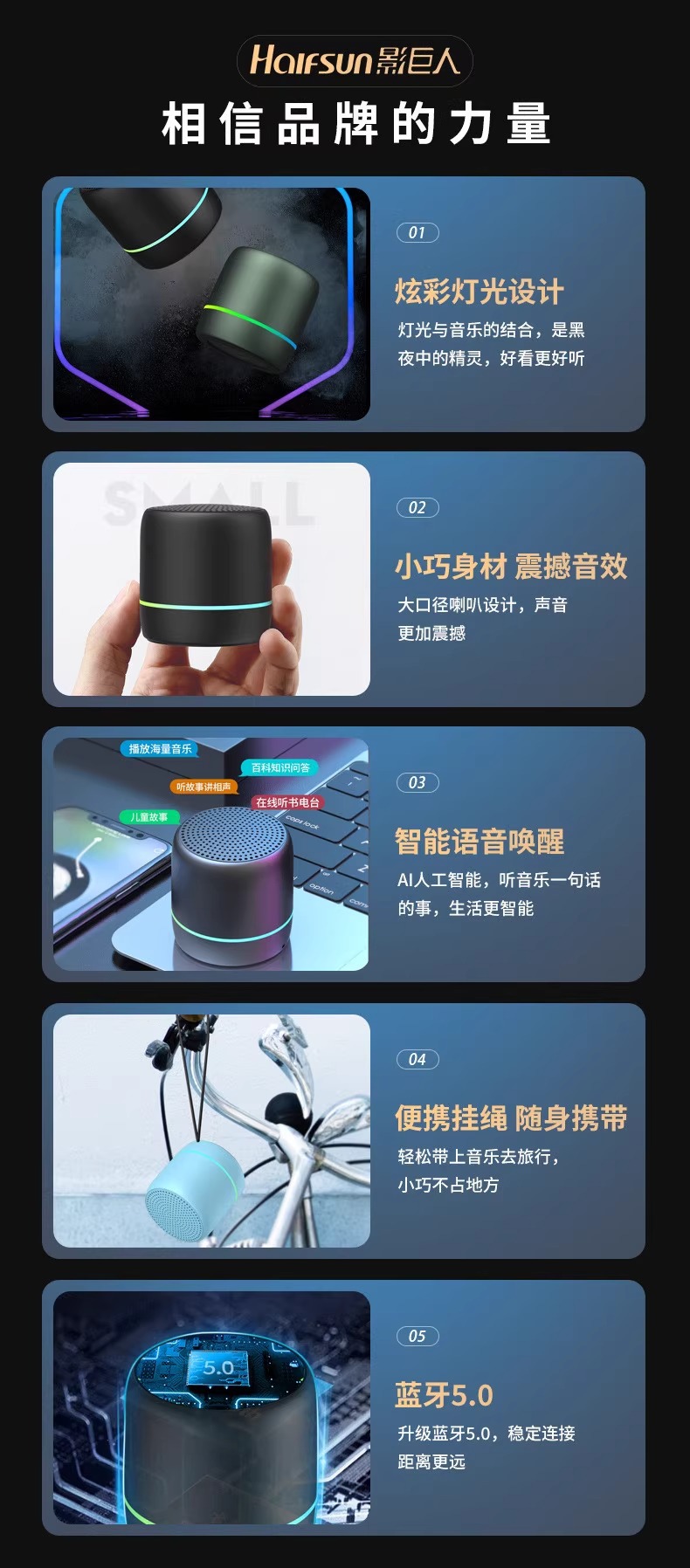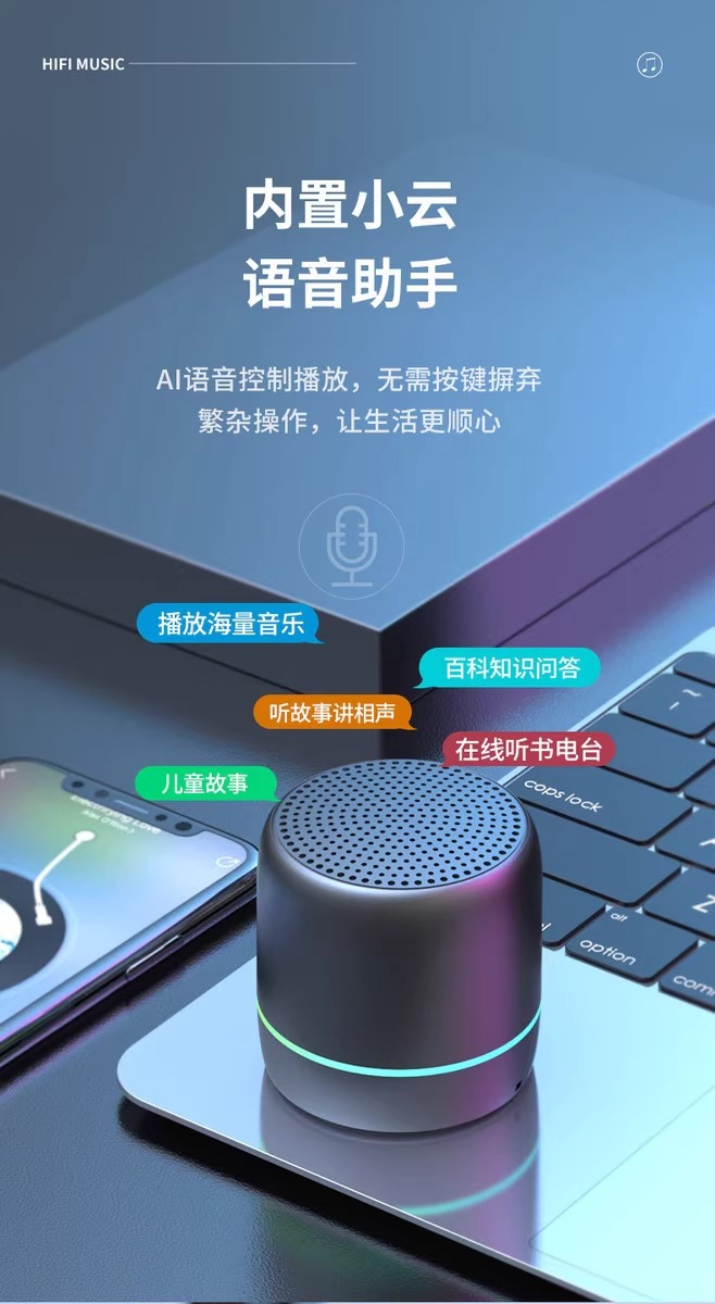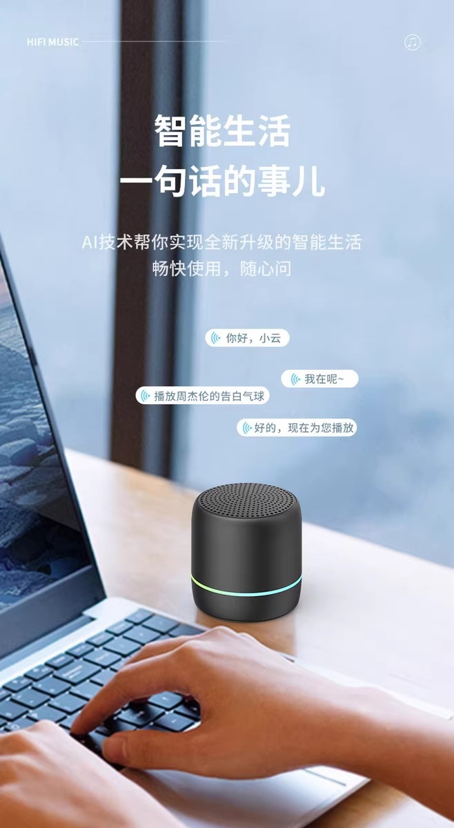 2025 새로운 무선 블루투스 스피커 AI 스마트 음성 제어 작은 스테레오 휴대용 서브 우퍼 미니 스틸 대포