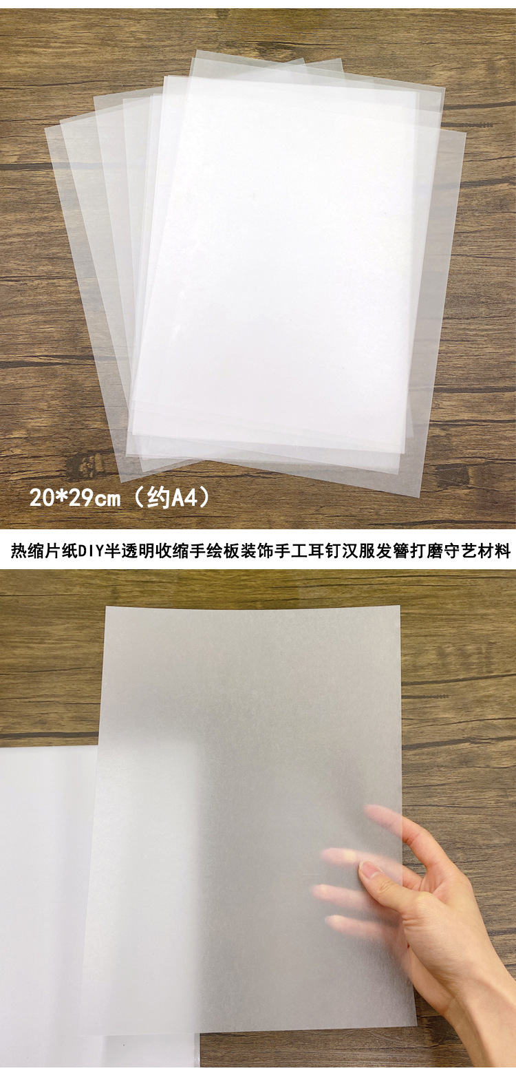 열 수축 시트 반투명 광택 열 수축 종이 인쇄 가능한 DIY 세트 귀걸이 머리핀 펜던트 열풍 재료스토어 가기