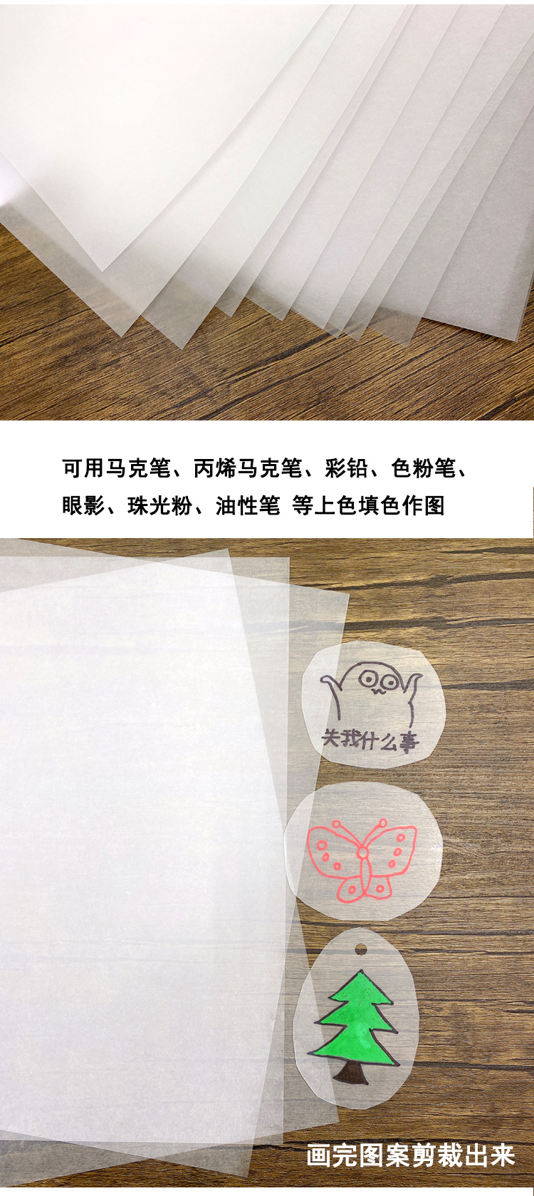 열 수축 시트 반투명 광택 열 수축 종이 인쇄 가능한 DIY 세트 귀걸이 머리핀 펜던트 열풍 재료