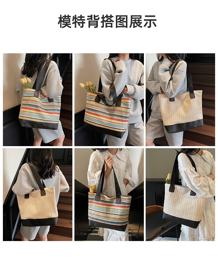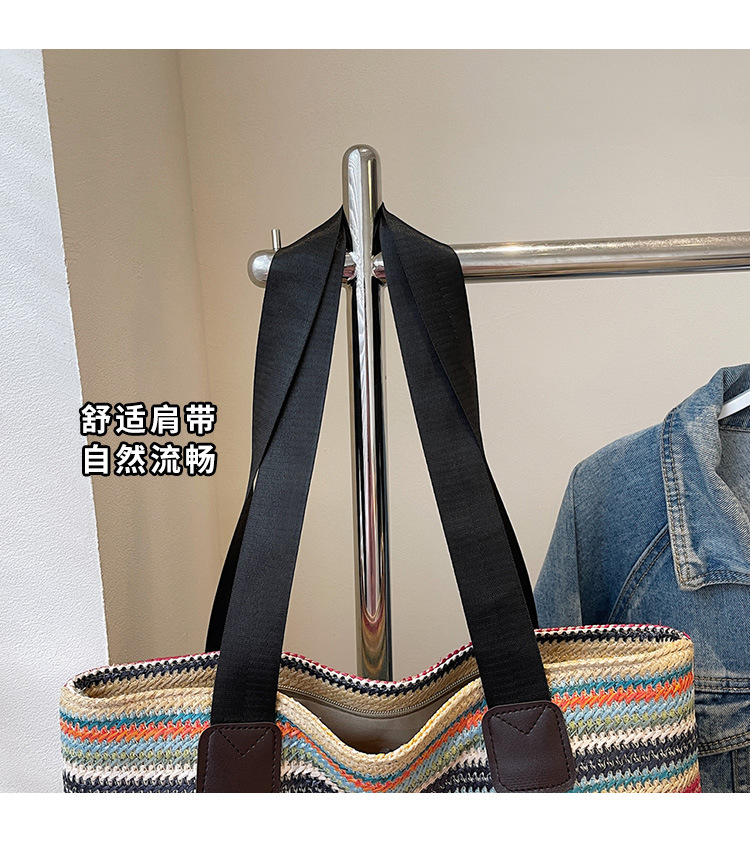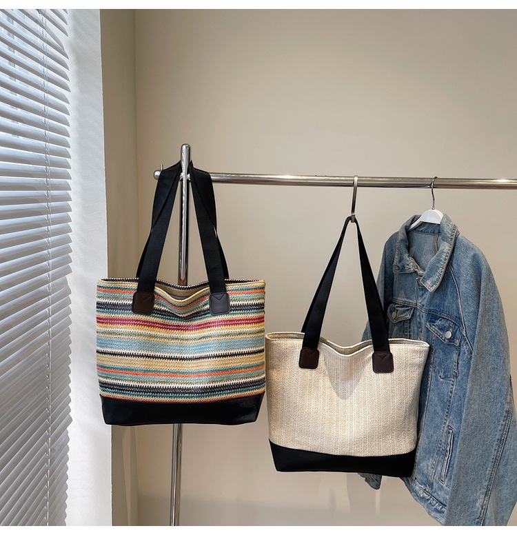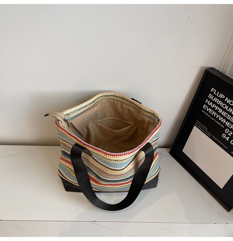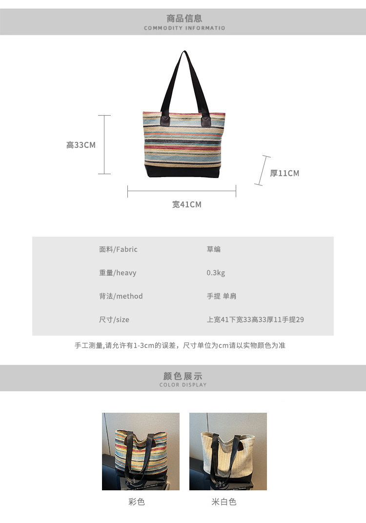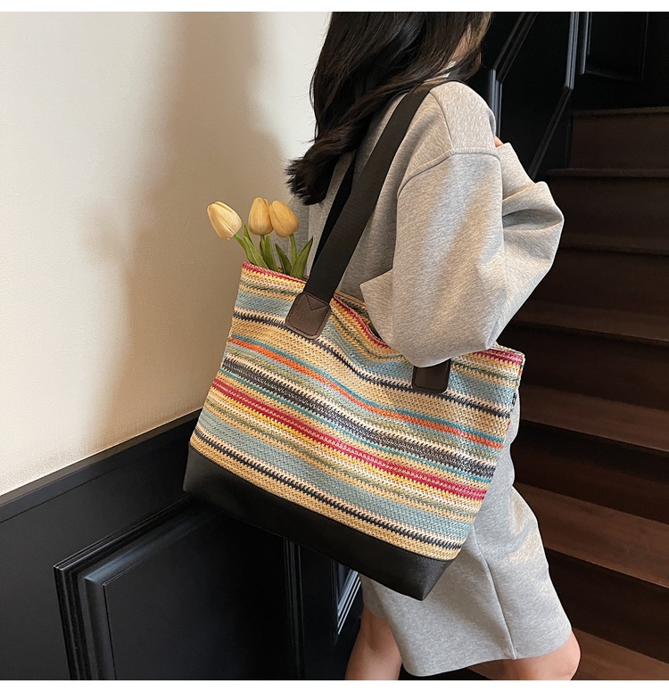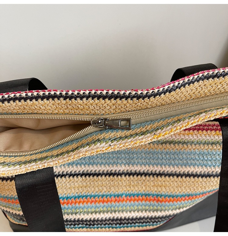 무지개 짠 가방 여성의 대용량 밀짚 짠 가방 여름 해변 레저 휴일 통근 어깨 가방 비치 백스토어 가기