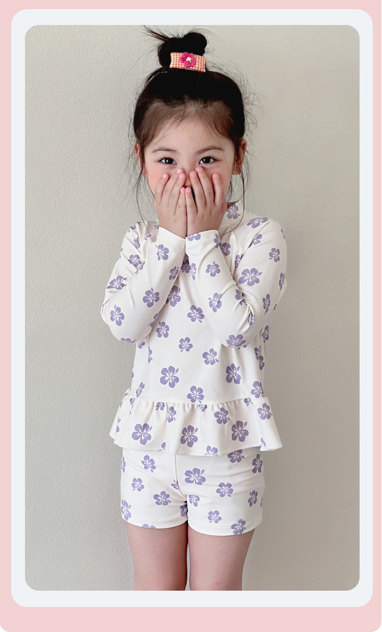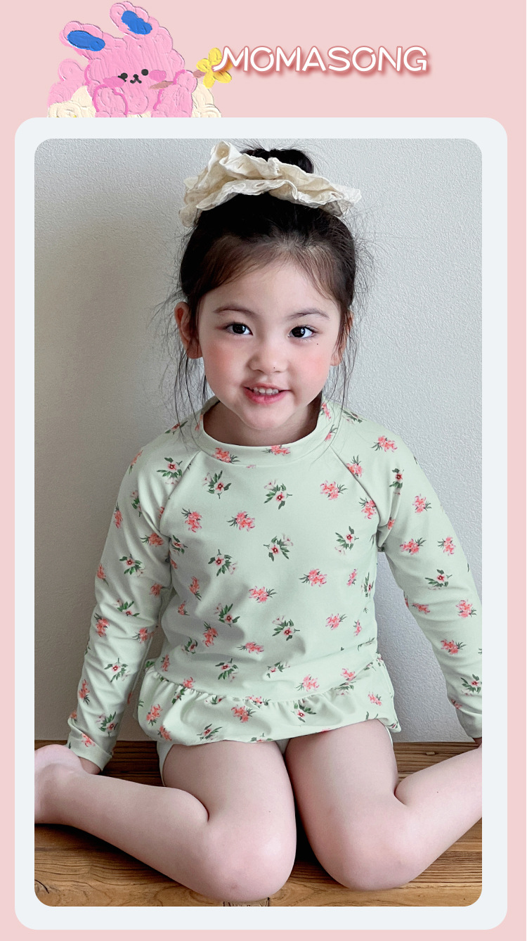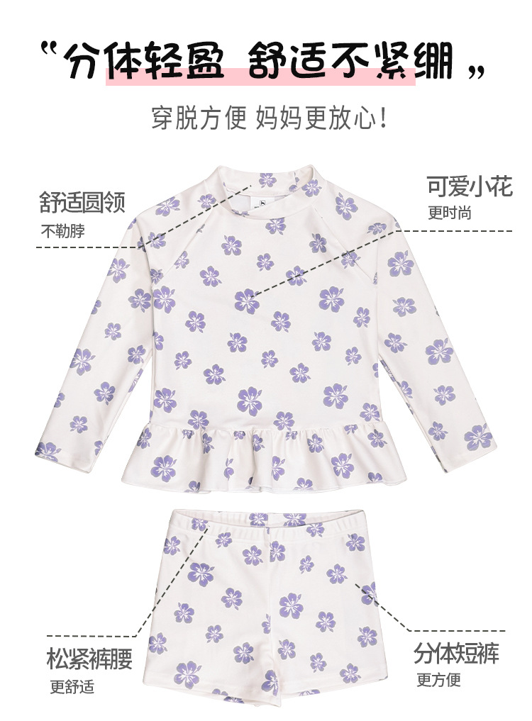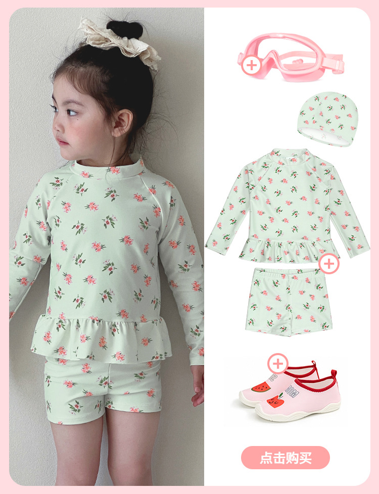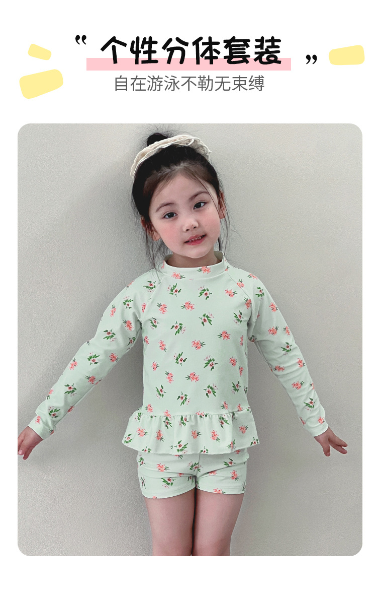 새로운 어린이 수영복 소녀 분할 빠른 건조 긴팔 수영복 중소 어린이 소녀 귀여운 자외선 차단제 수영복 도매스토어 가기