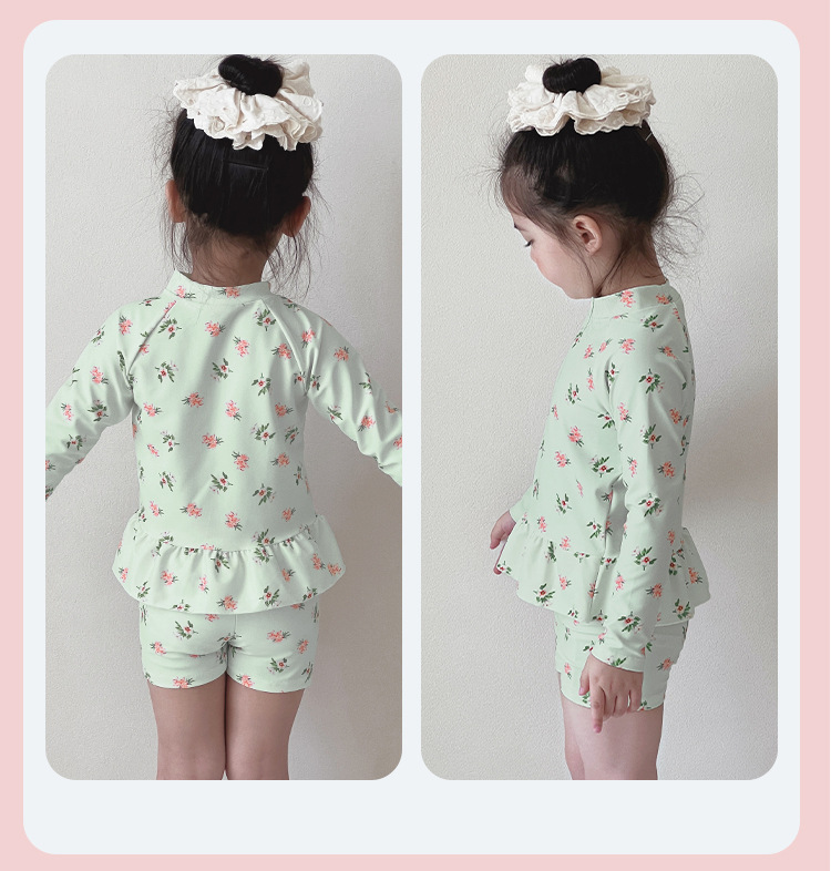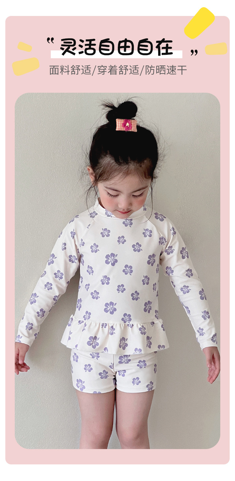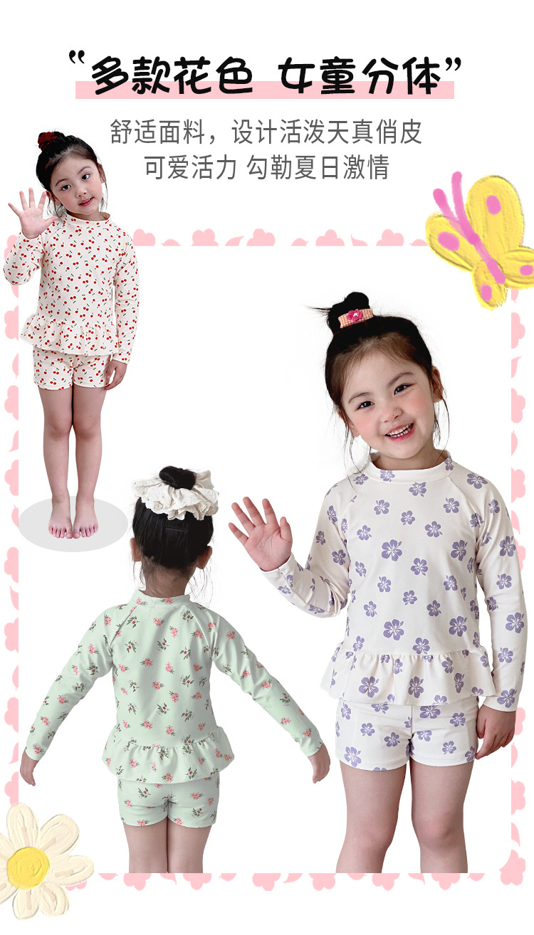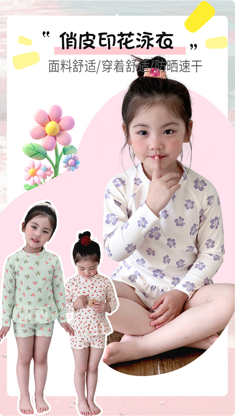 새로운 어린이 수영복 소녀 분할 빠른 건조 긴팔 수영복 중소 어린이 소녀 귀여운 자외선 차단제 수영복 도매
