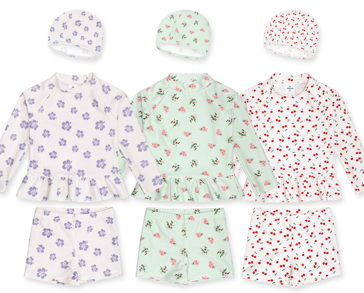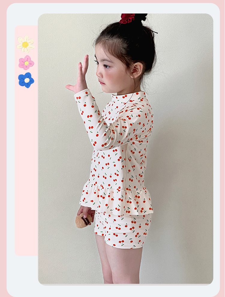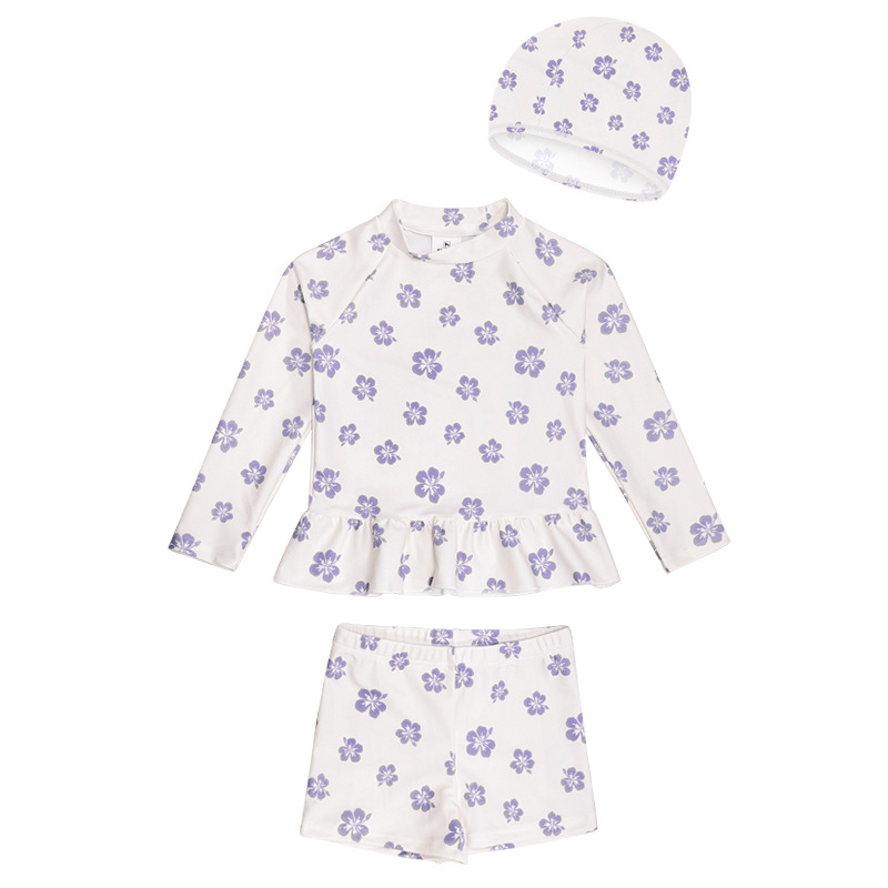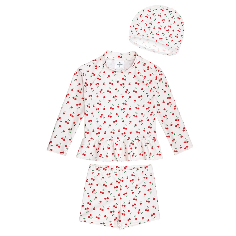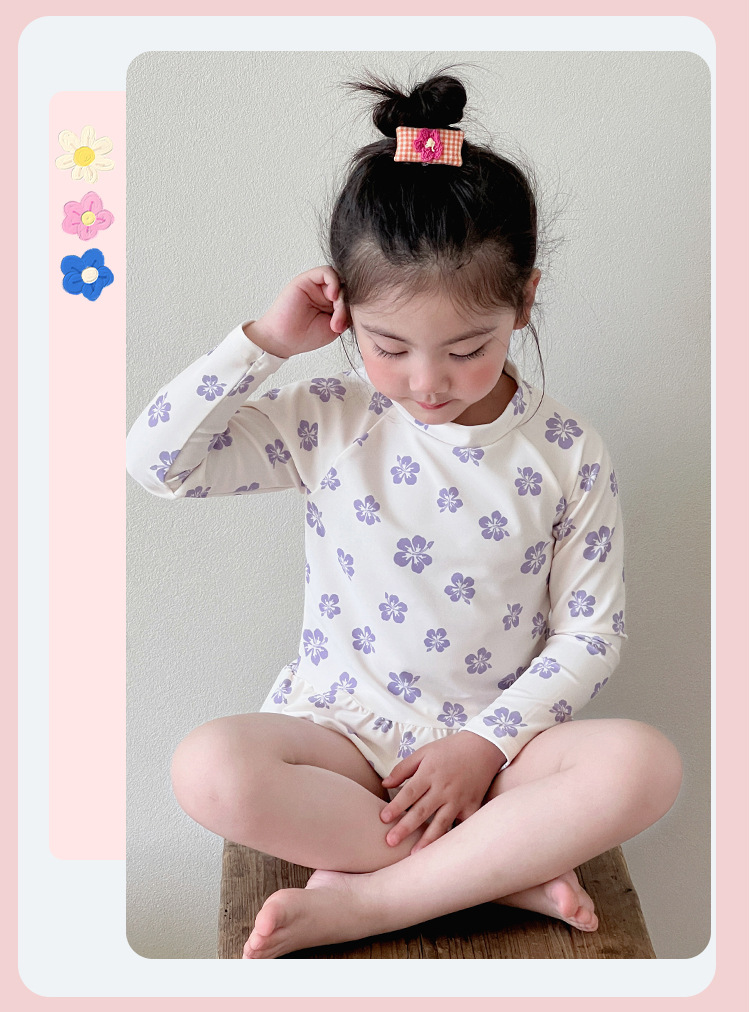 새로운 어린이 수영복 소녀 분할 빠른 건조 긴팔 수영복 중소 어린이 소녀 귀여운 자외선 차단제 수영복 도매