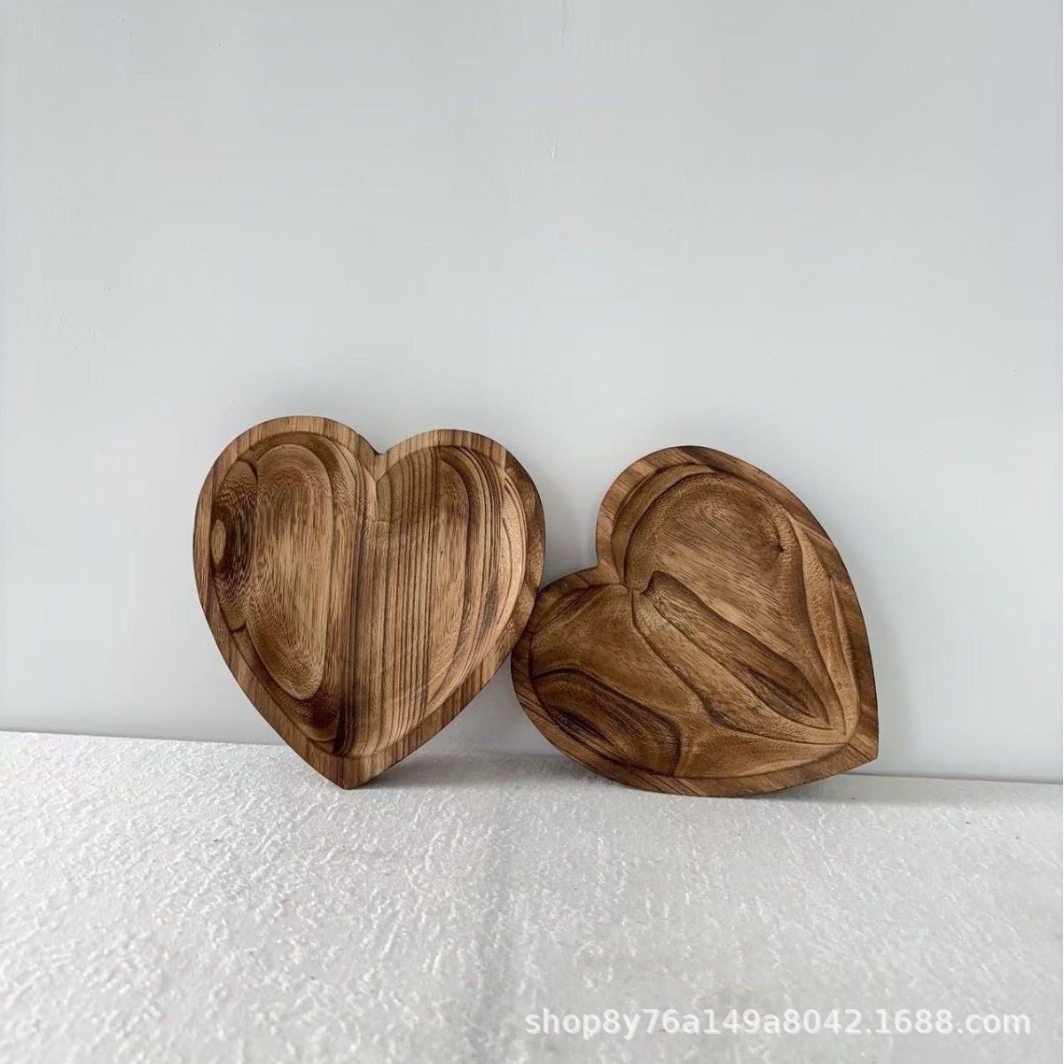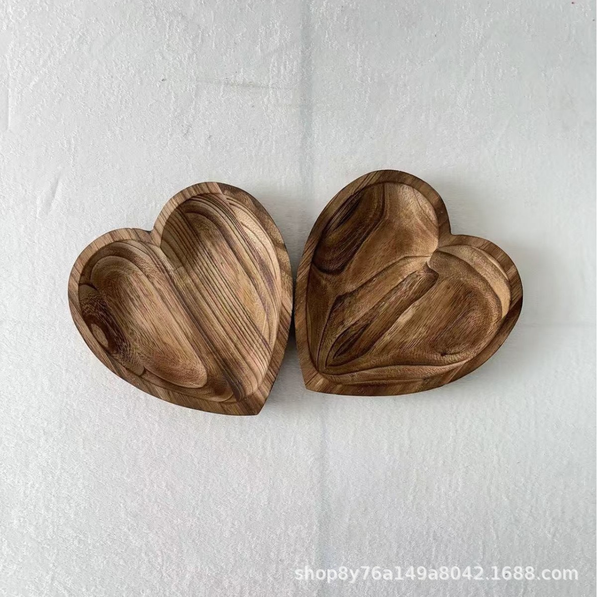 나무 사랑 트레이 홈 레스토랑 야채 플레이트 단단한 나무 디너 플레이트 너트 플레이트 하트 모양의 장식품 트레이
