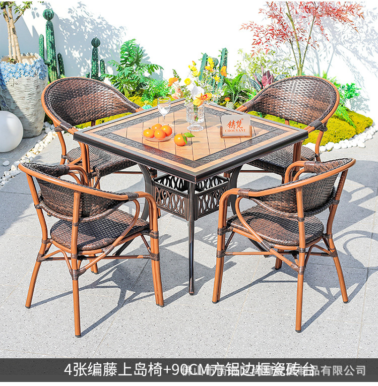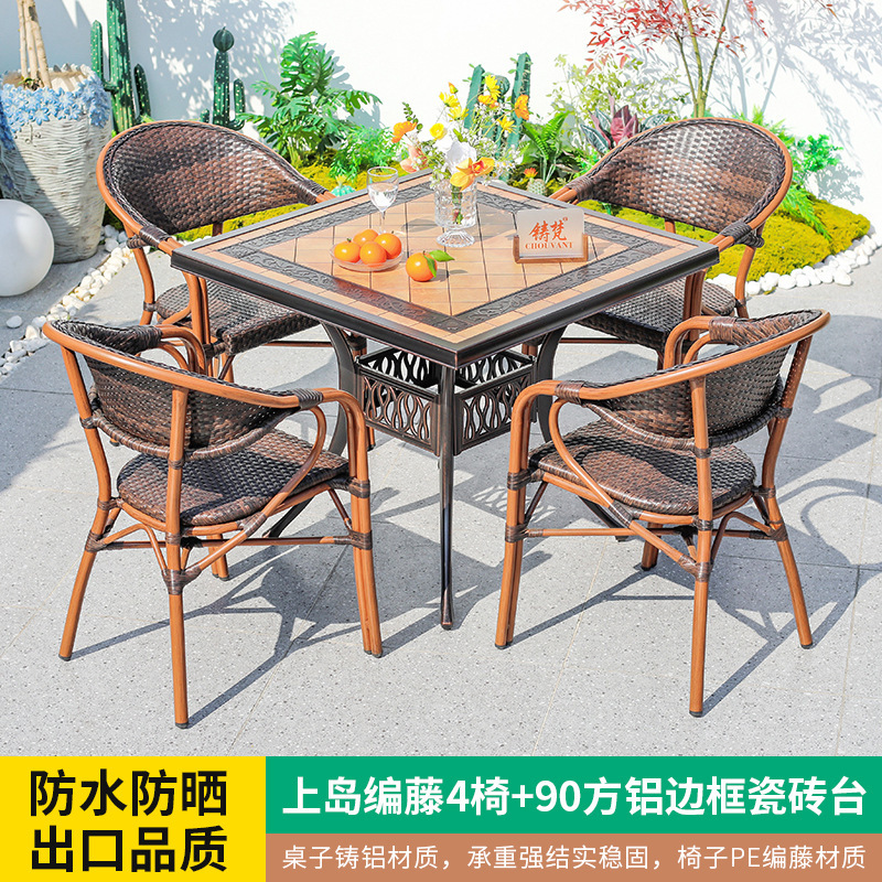 • 등나무로 엮은 섬 의자 4개 + 90제곱미터 알루미늄 프레임 타일 테이블