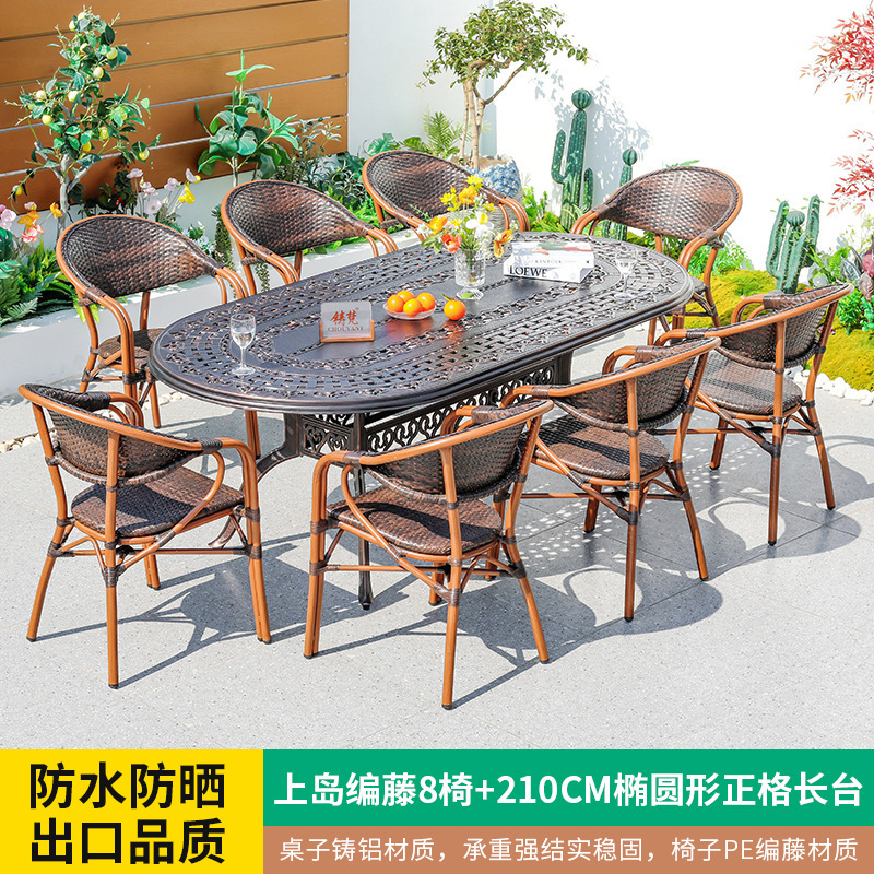 • 등나무로 엮은 섬의자 8개 + 210cm 타원형 정사각형 긴 테이블