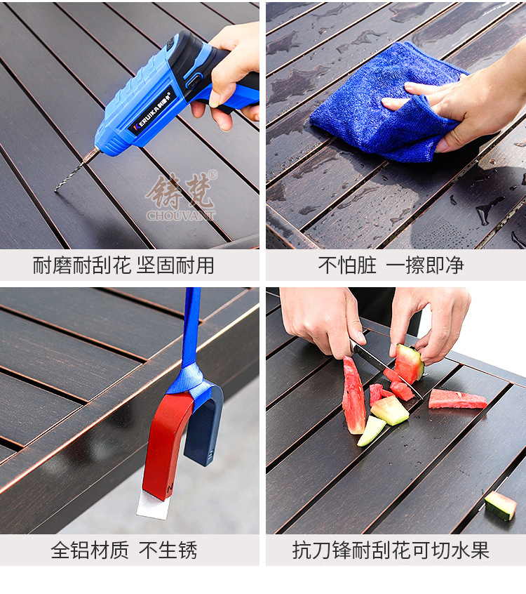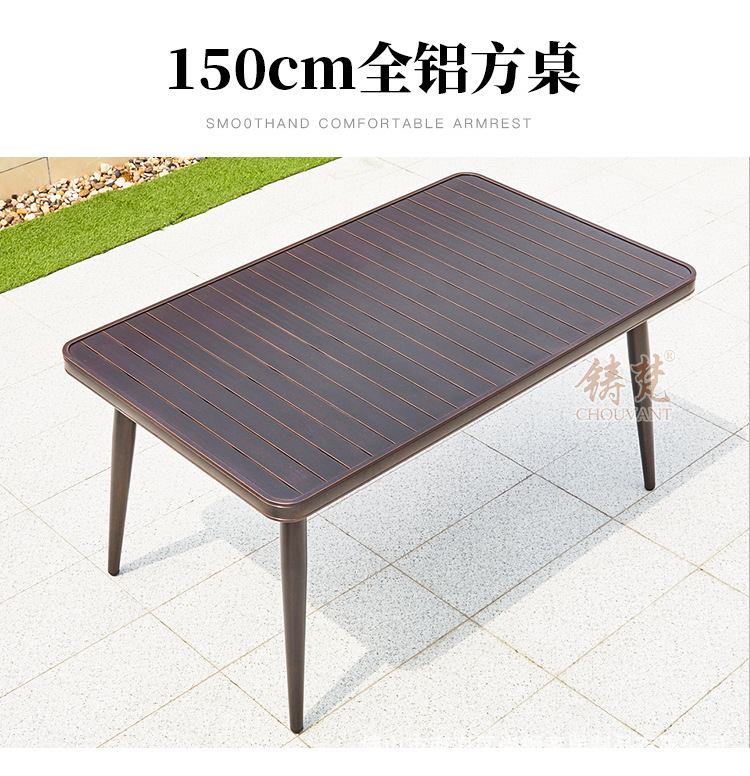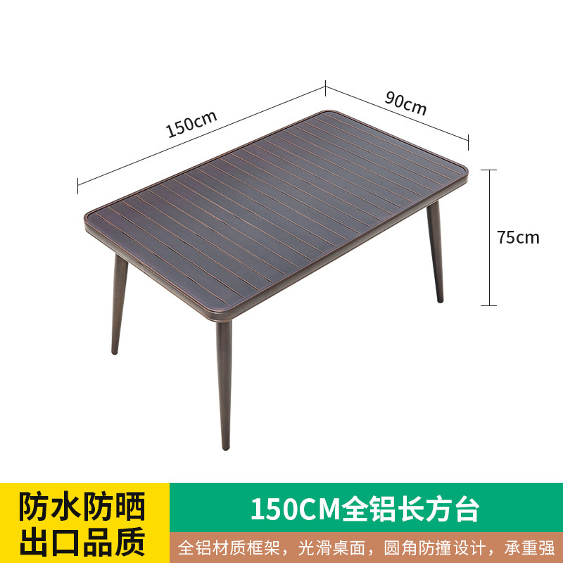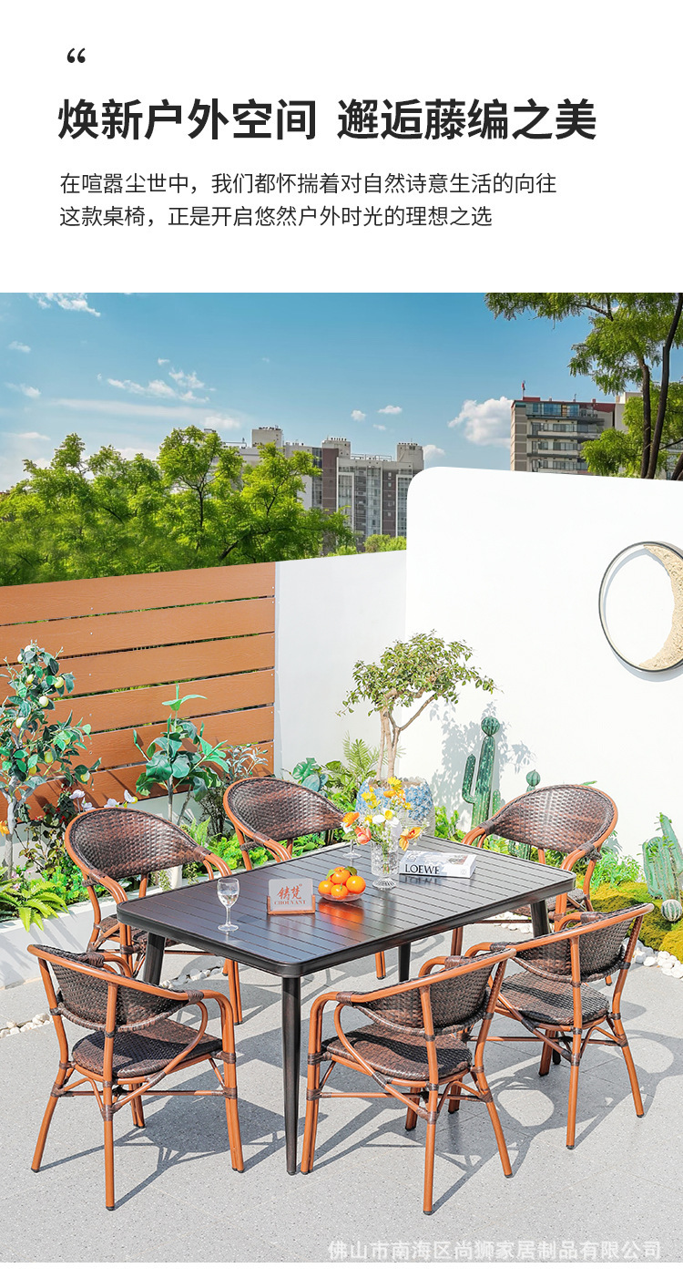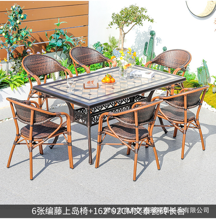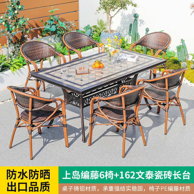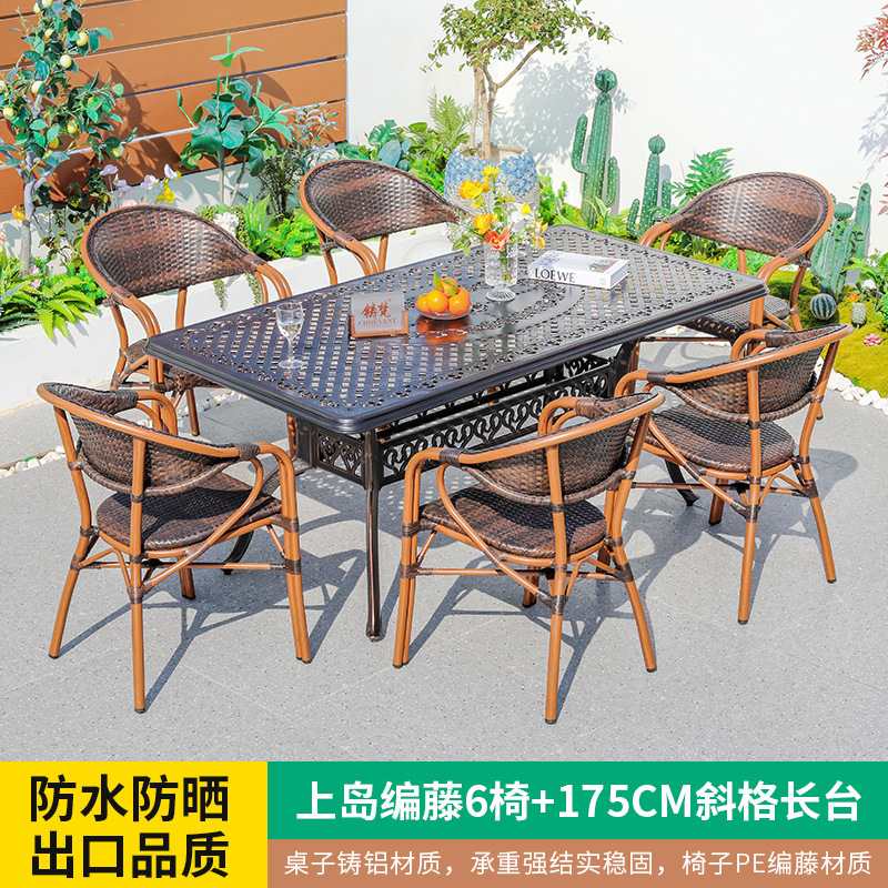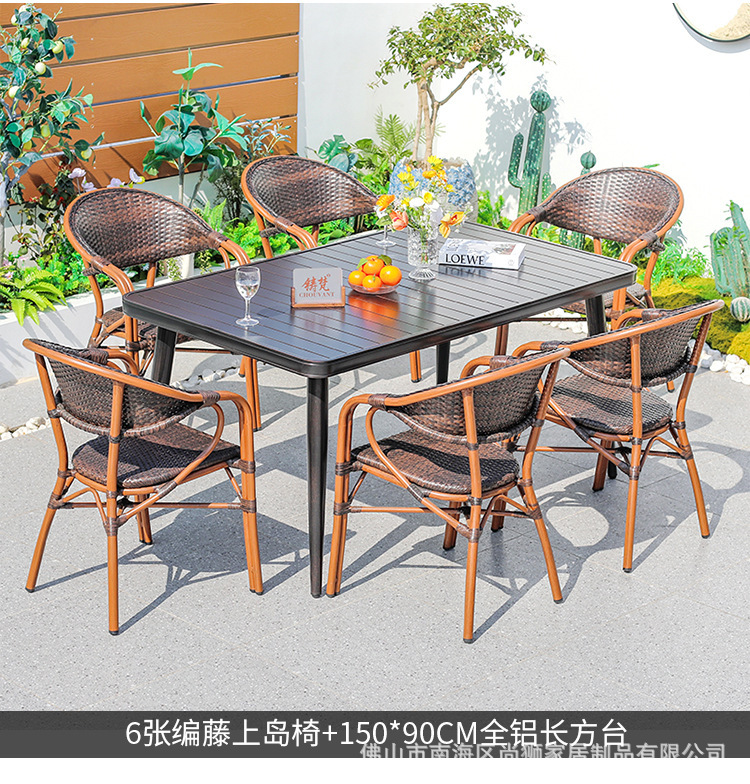 • 등나무로 엮은 섬 의자 6개 + 150cm 전체 알루미늄 직사각형 테이블