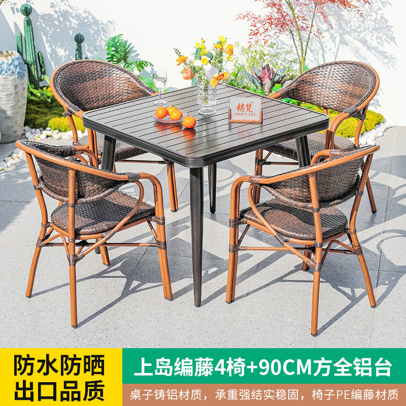 • 등나무로 엮은 섬 의자 4개 + 90cm 정사각형 전체 알루미늄 테이블