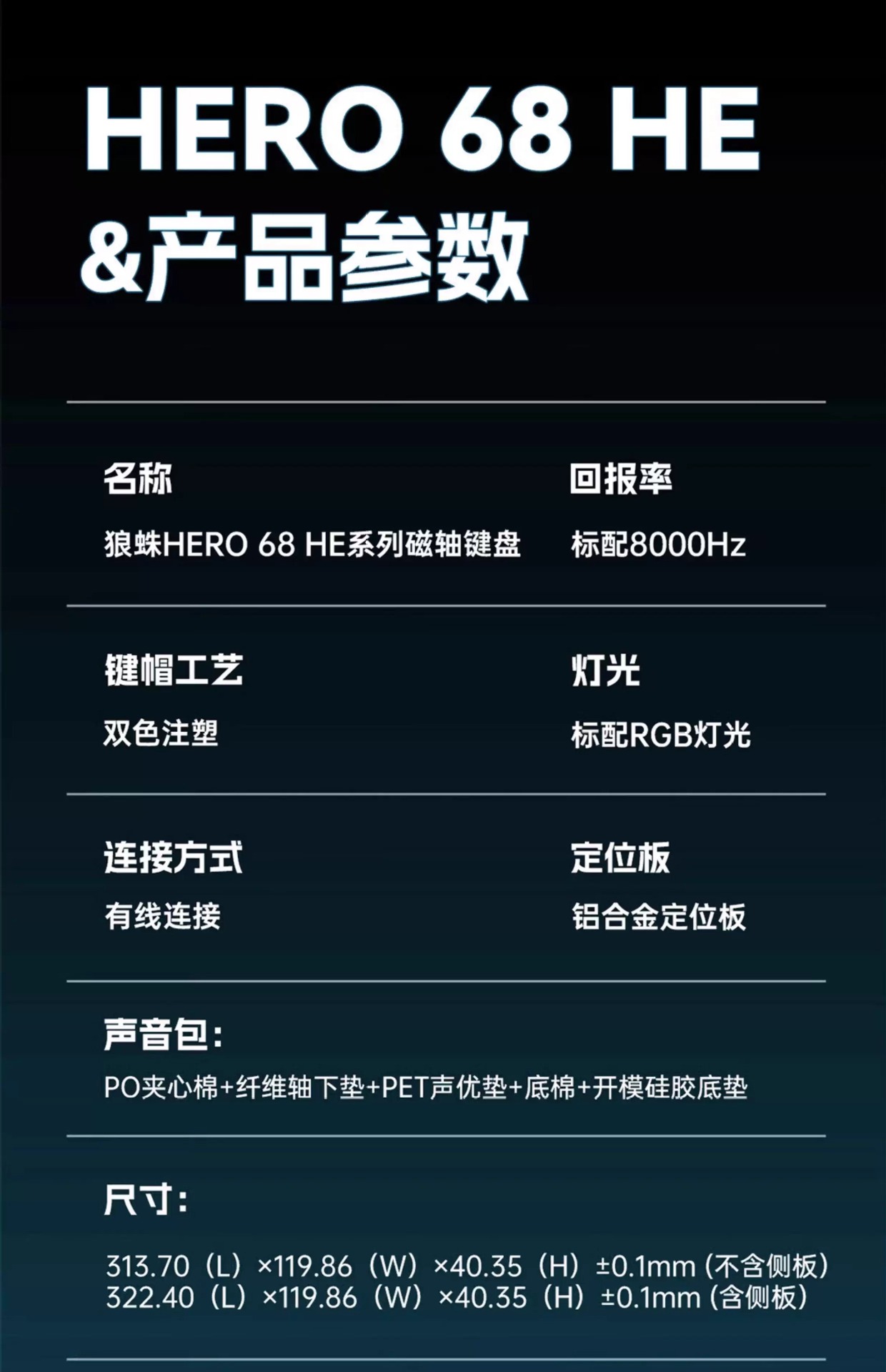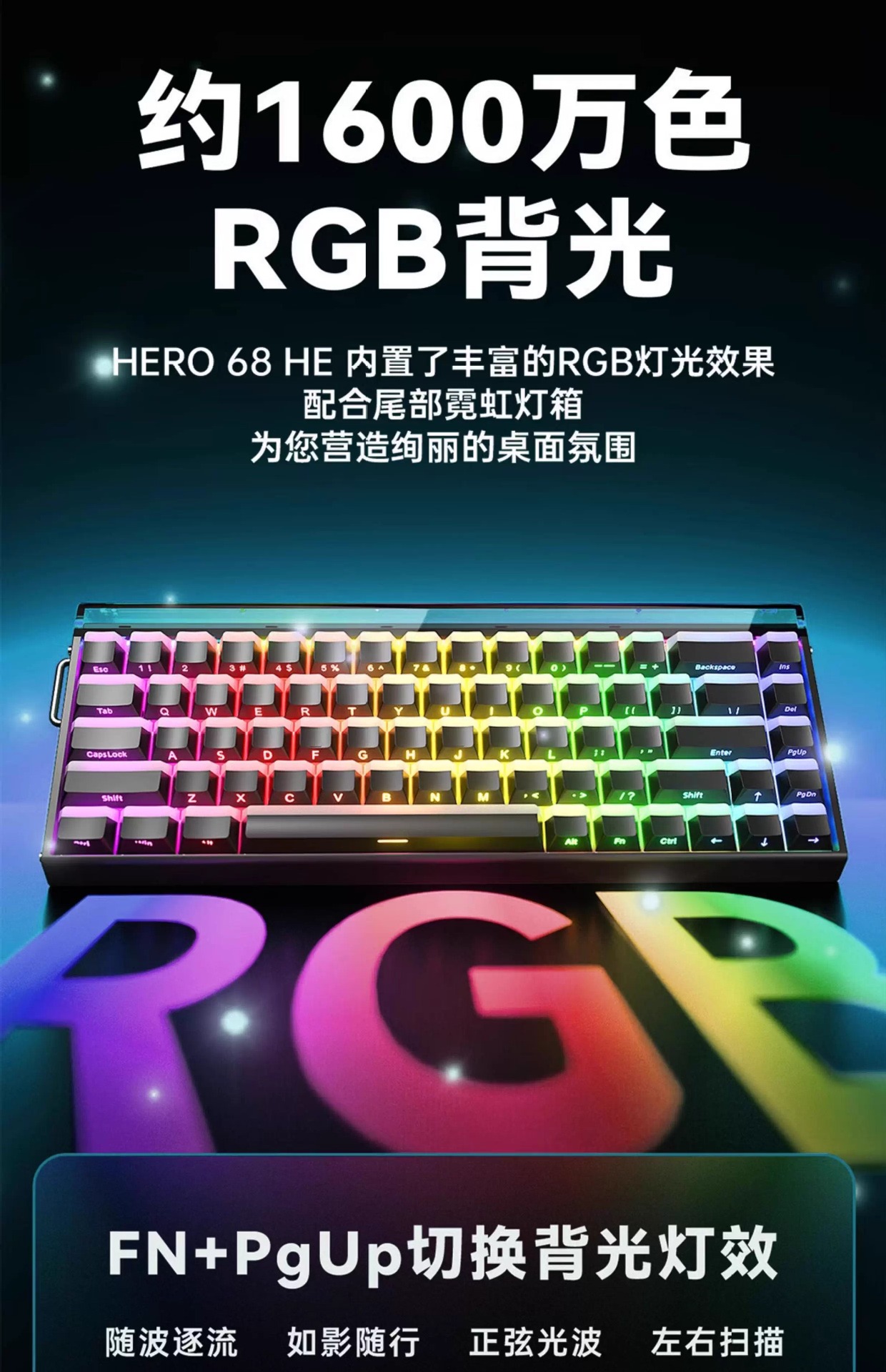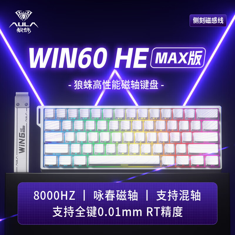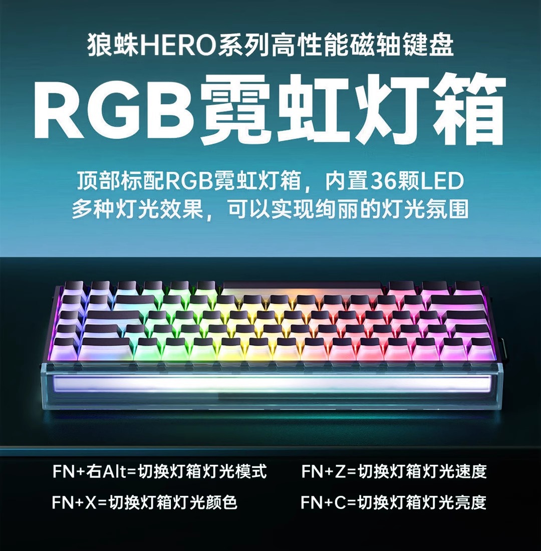 Wolf Spider WIN60/HERO68HE 시리즈 마그네틱 축 유선 키보드 RGB 조명 효과 고성능 축바디 e스포츠 게임용스토어 가기