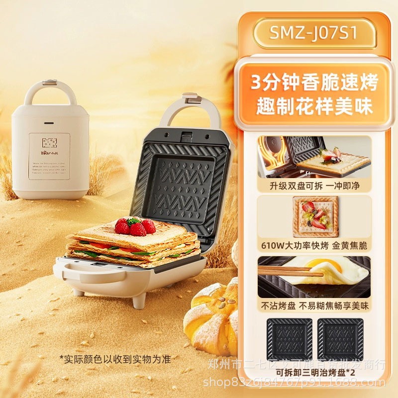 곰 전기 베이킹 팬 샌드위치 기계 가정용 아침 식사 기계 양면 프레스 토스터 토스트 SMZ-B05N1스토어 가기
