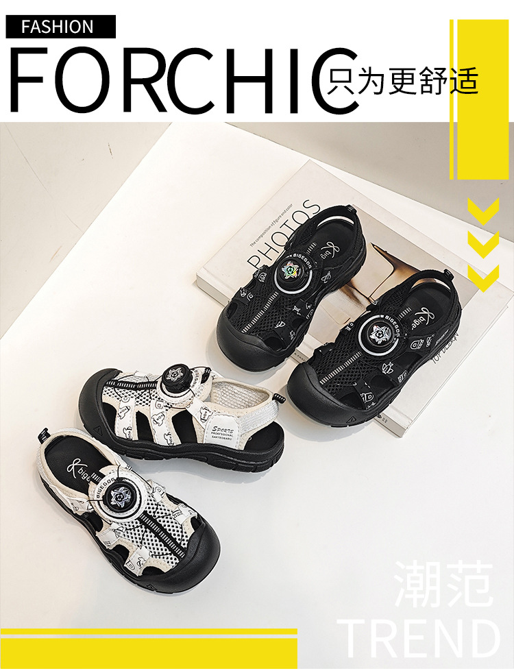 소년 샌들 2025 여름 새로운 Baotou 어린이 해변 신발 부드러운 바닥 아기 신발 강 신발 스포츠 신발