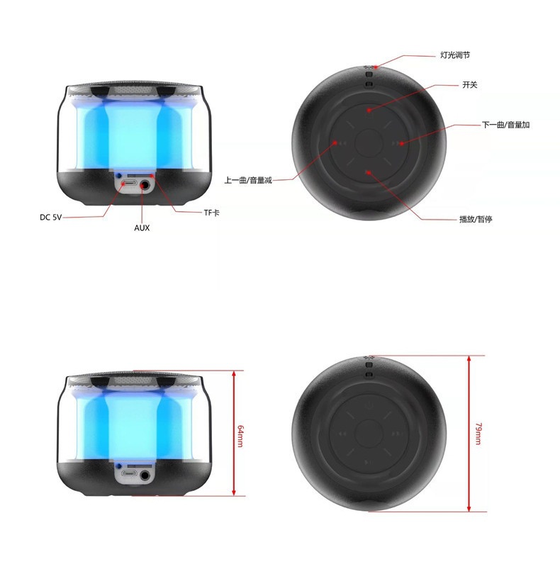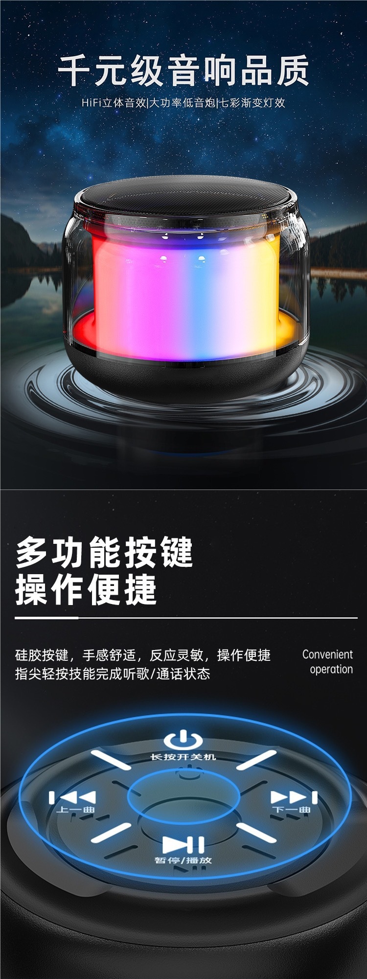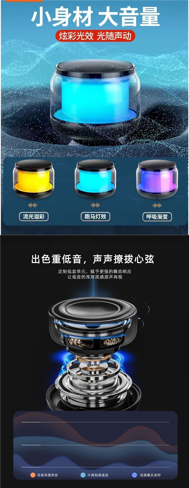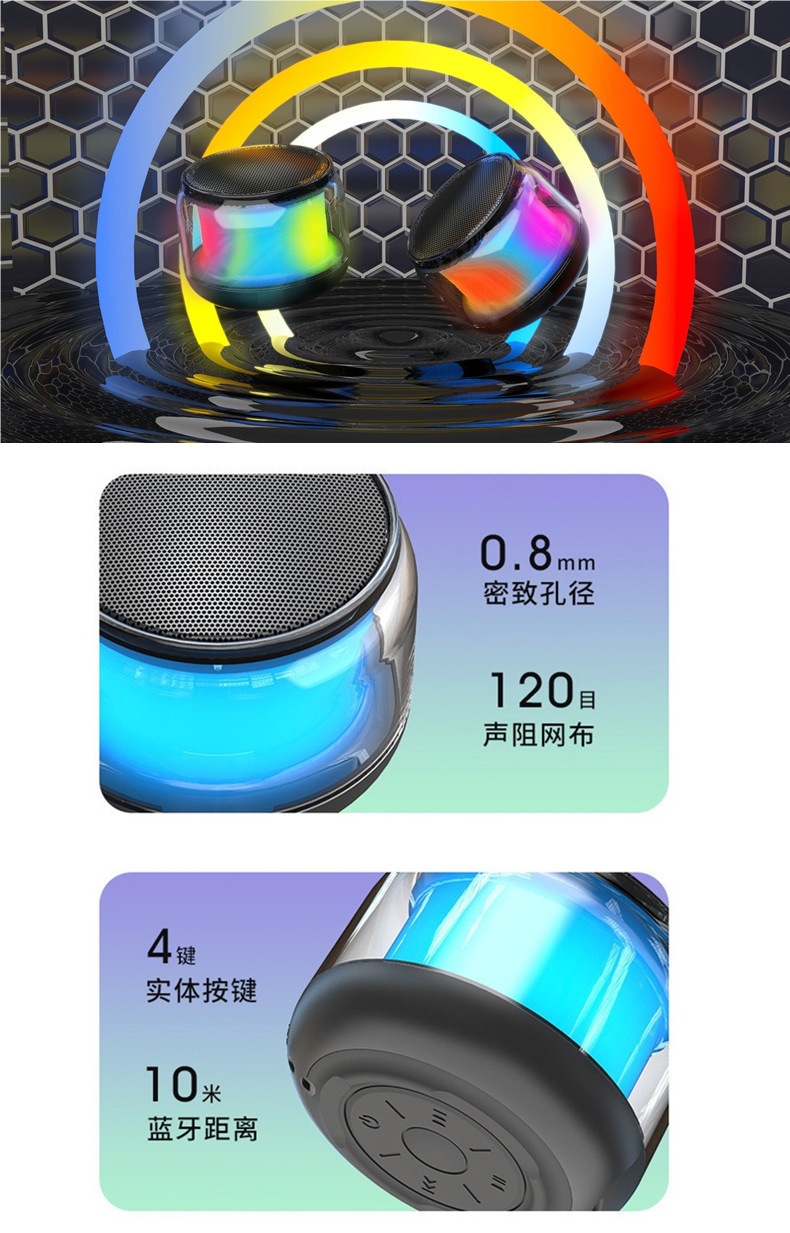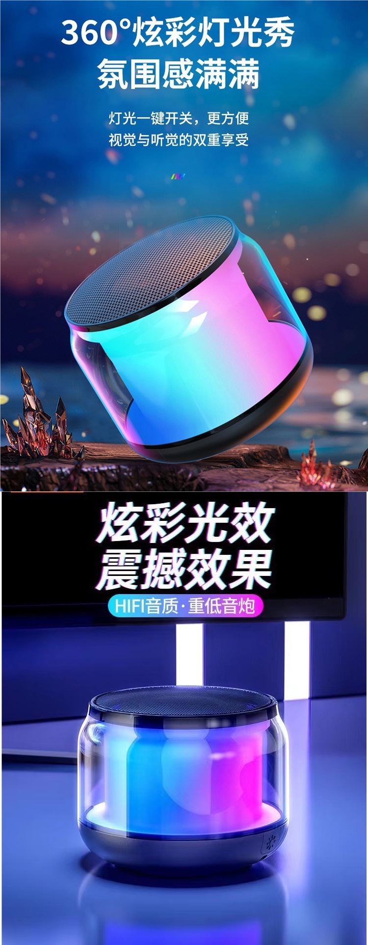 미니 휴대용 다채로운 무선 블루투스 스피커 지능형 고품질 오디오 카드 휴대용 서브 우퍼 다채로운 빛