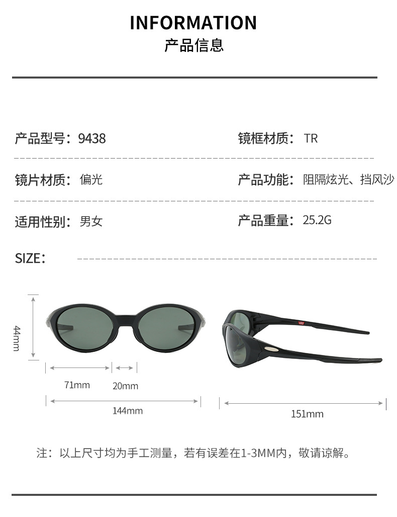 새로운 국경 야외 스포츠 승마 나일론 편광 선글라스 남성 및 여성을위한 유행 레트로 여행 운전 선글라스 9438