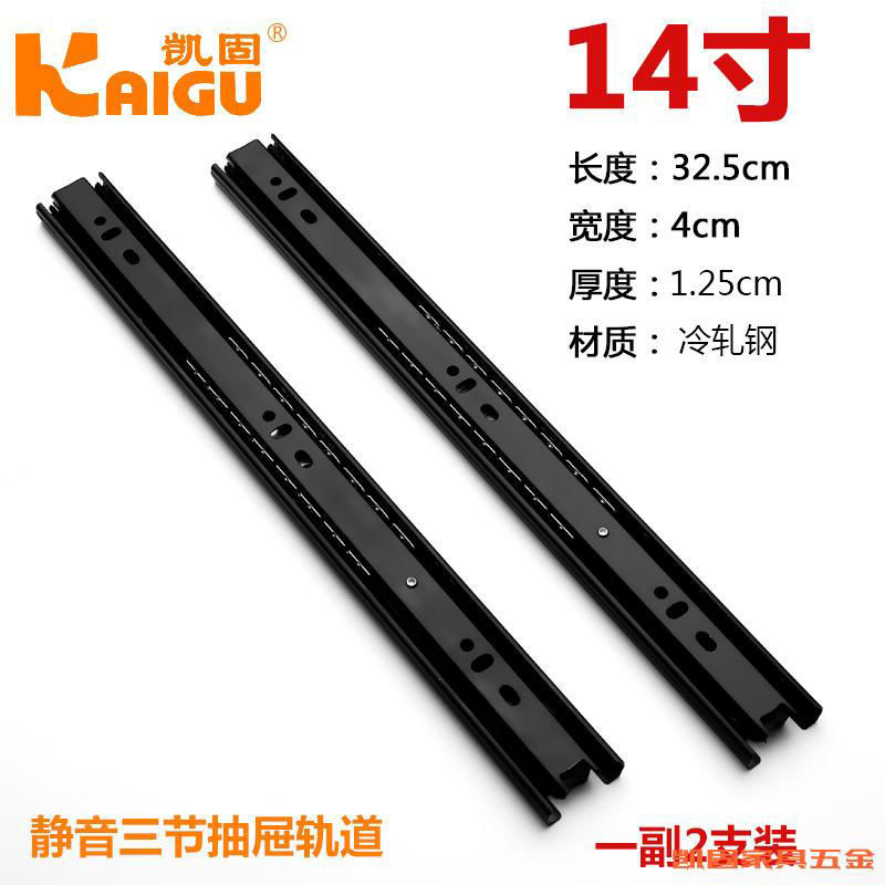 • [두꺼운 검정색 강철] 3단 레일 비표준 짧은 2.5cm- 14inch -35CM [2개 1쌍]