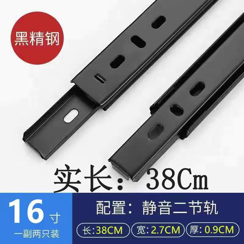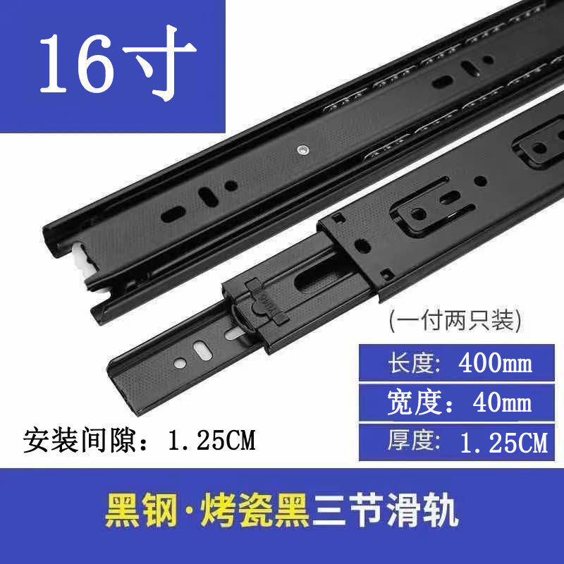 • [두꺼운 검정색 강철] 3단 레일 비표준 짧은 2.5cm- 16inch -40CM [2개 1쌍]
