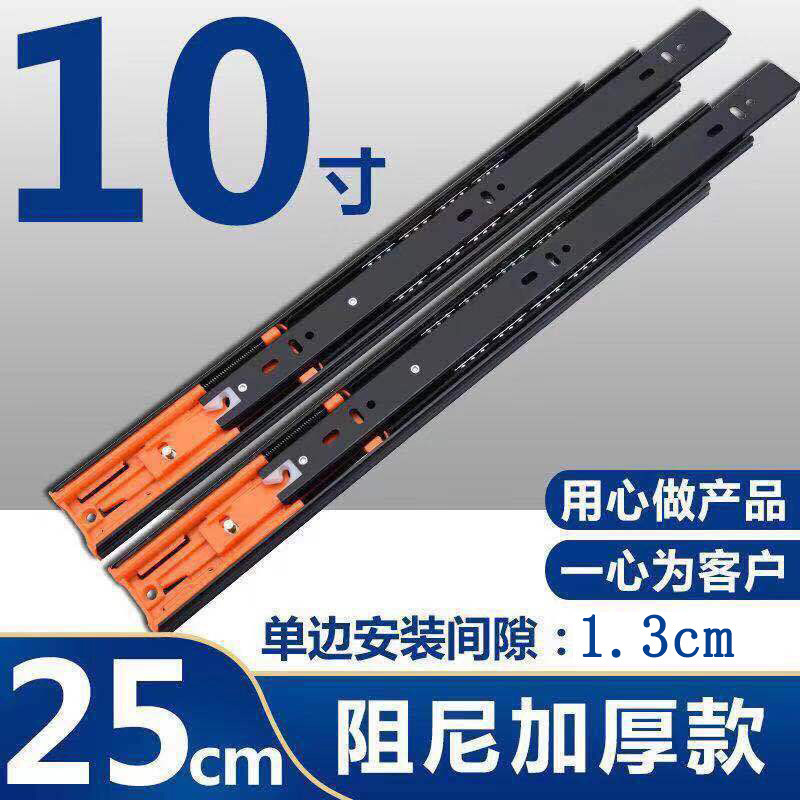 • [두꺼운 검정색 강철 완충기] 3섹션 레일 - 10inch -25CM [2개 1세트]
