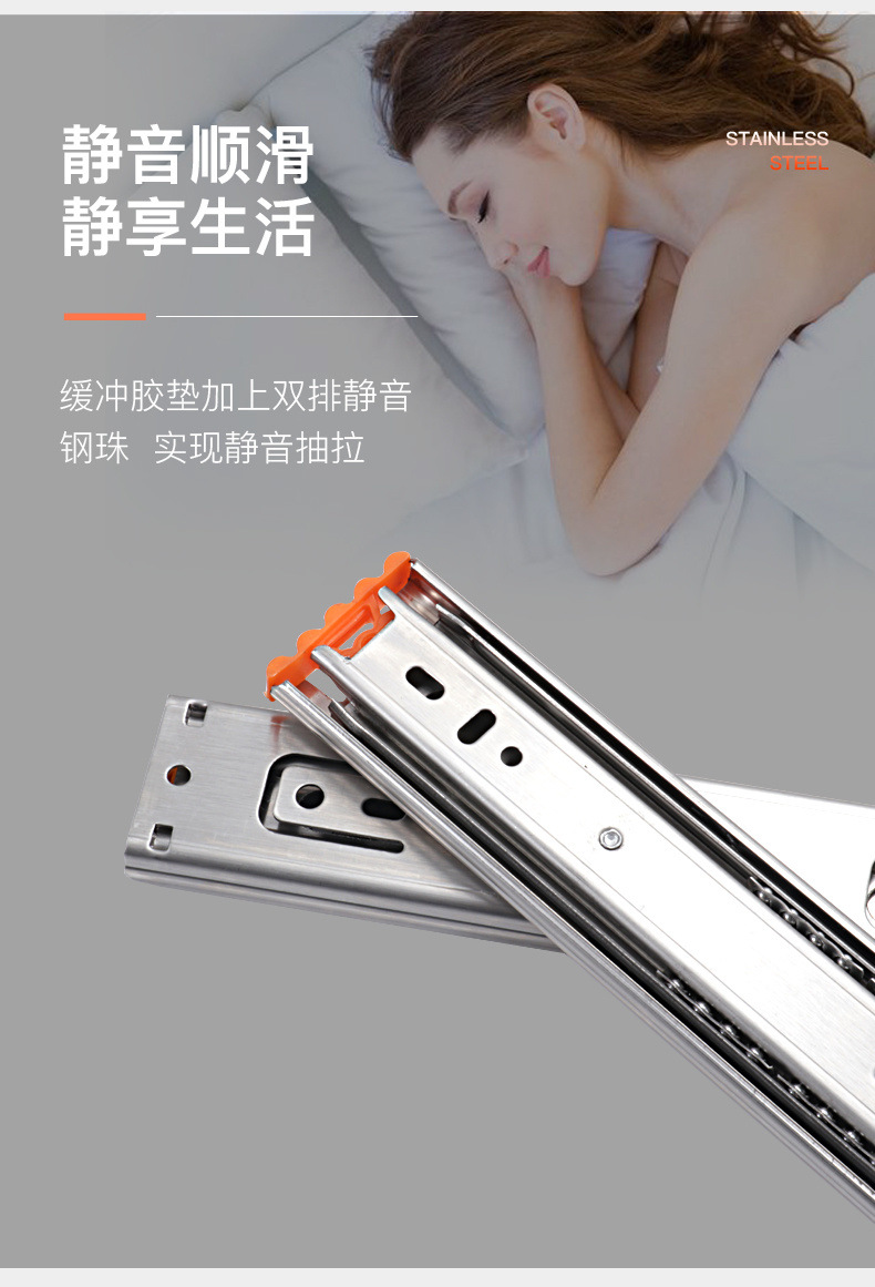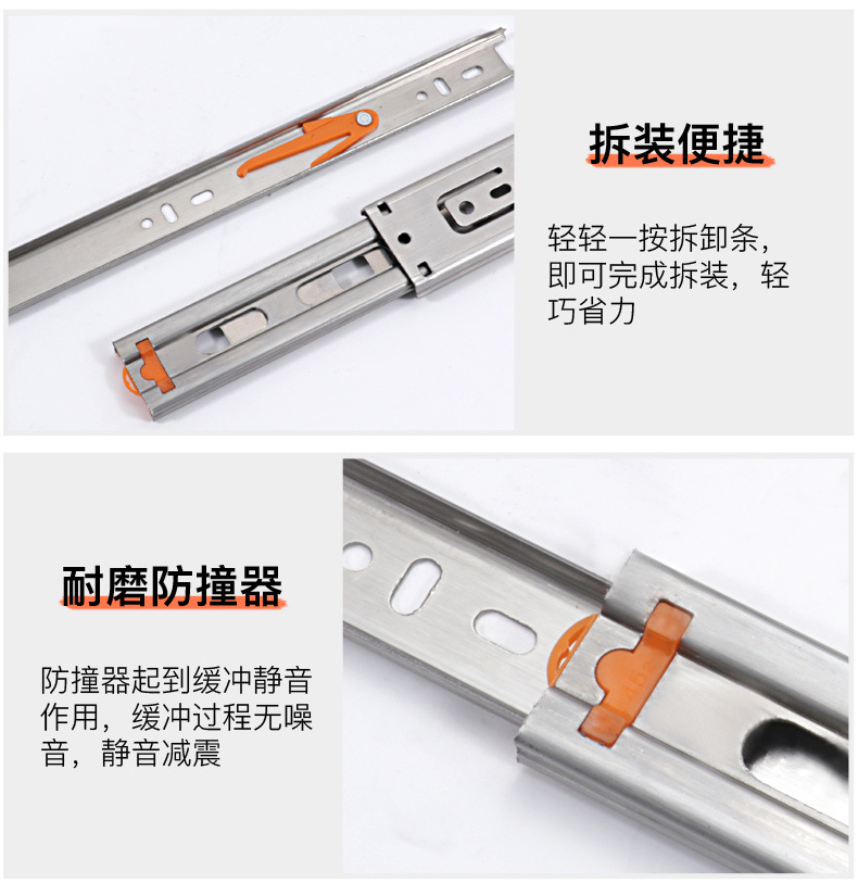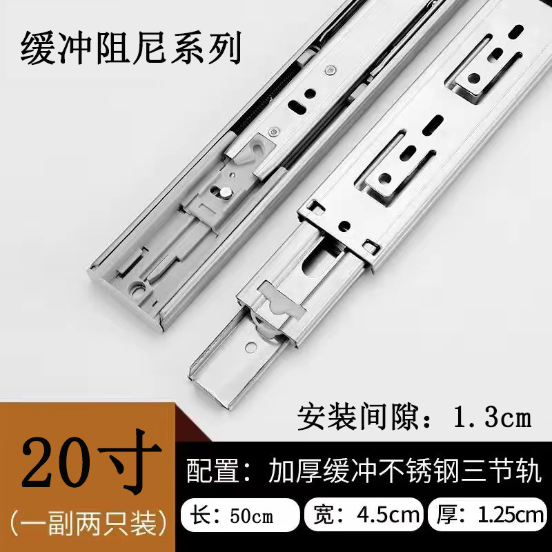 스테인레스 스틸 서랍 레일 3 섹션 댐핑 버퍼 무음 슬라이드 가구 스틸 볼 가이드 옷장 서랍 레일 45