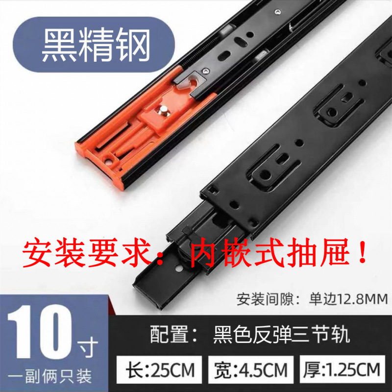 • [두꺼운 검정색 강철] 3단 레일 비표준 짧은 2.5cm- 10inch -25CM [2개 1쌍]
