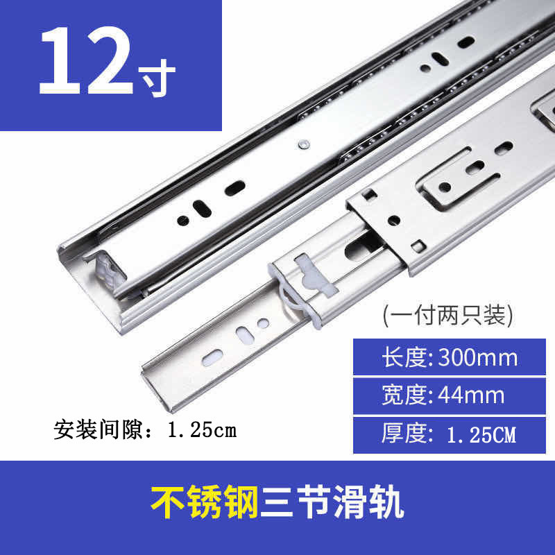 • [두꺼운 완충 스테인레스 스틸] 3단 레일 - 12inch -30CM [2개 1쌍]