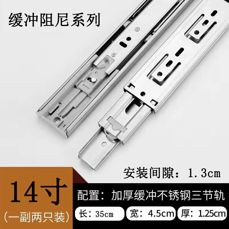 • [두꺼운 완충 스테인레스 스틸] 3단 레일 - 14inch -35CM [2개 1쌍]