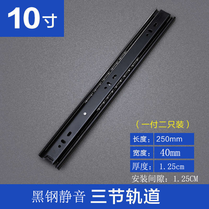 • [두꺼운 검정색 강철 무음] 3섹션 레일 - 10inch -25CM [2개 1쌍]