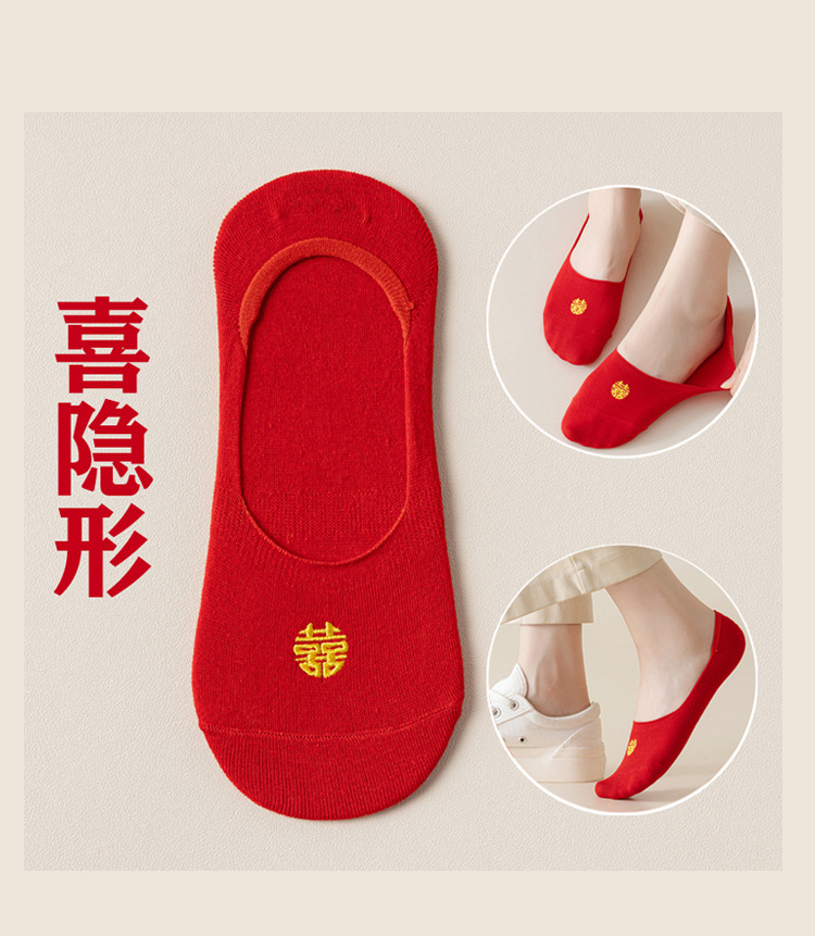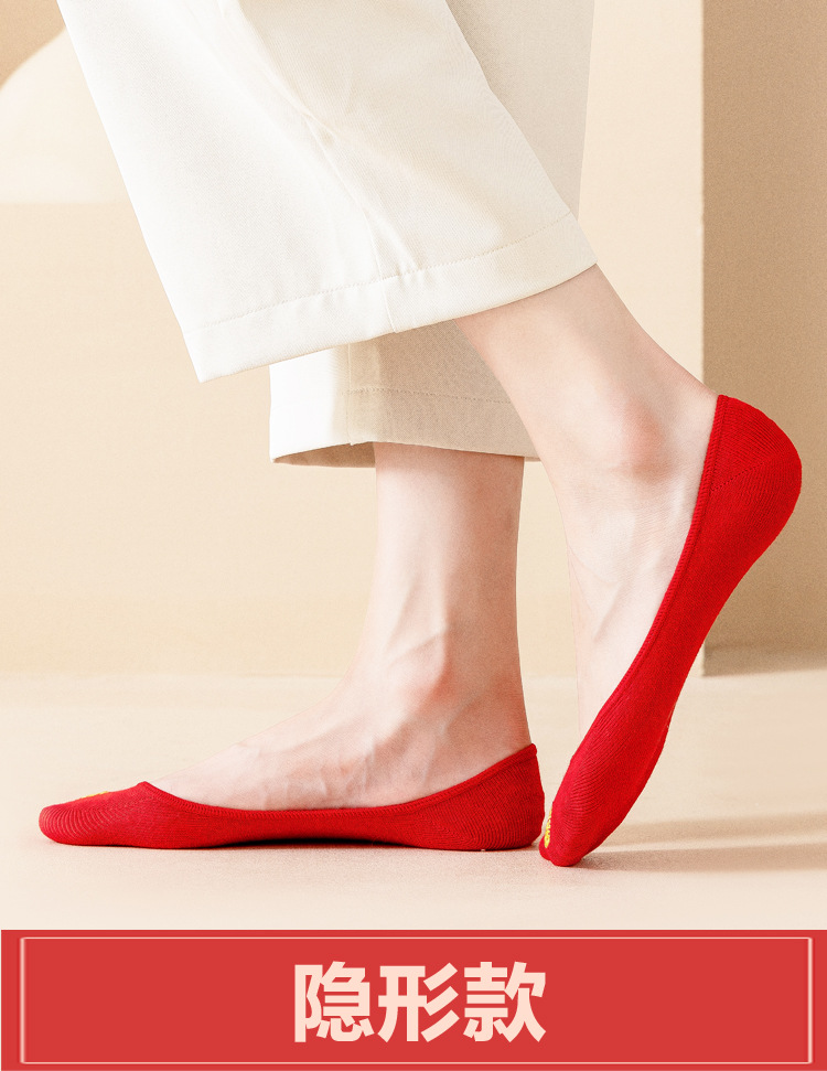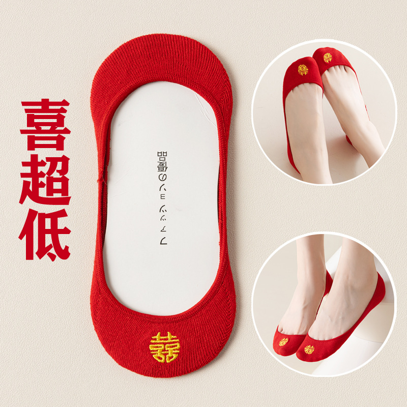 레드 양말 신부 아이스 실크 하이힐 보이지 않는 웨딩 레드 코튼 양말 보트 양말 얕은 입 미끄럼 방지 여름 얇은 코튼 바닥스토어 가기