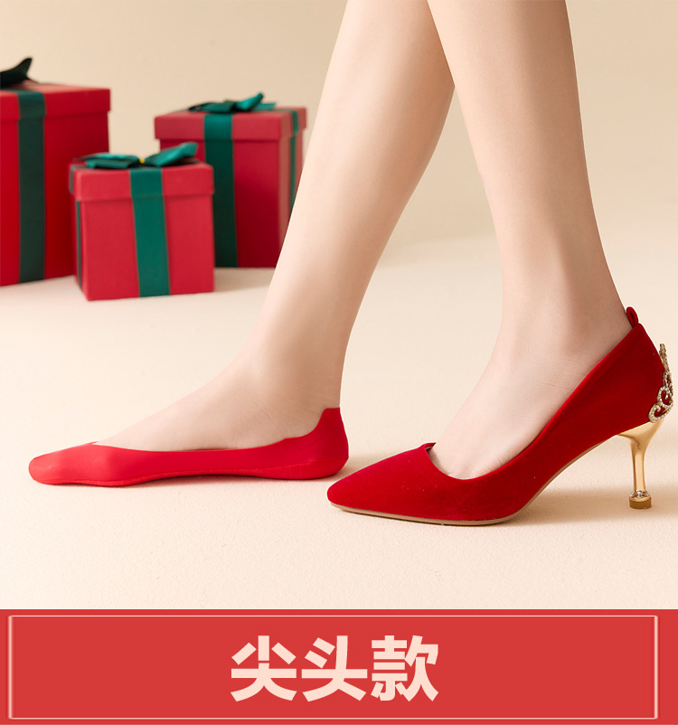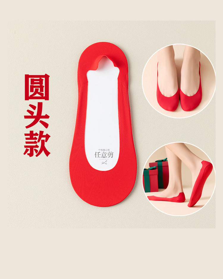 레드 양말 신부 아이스 실크 하이힐 보이지 않는 웨딩 레드 코튼 양말 보트 양말 얕은 입 미끄럼 방지 여름 얇은 코튼 바닥