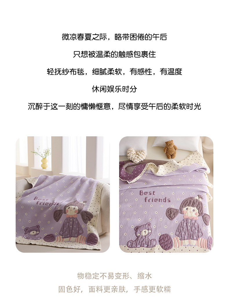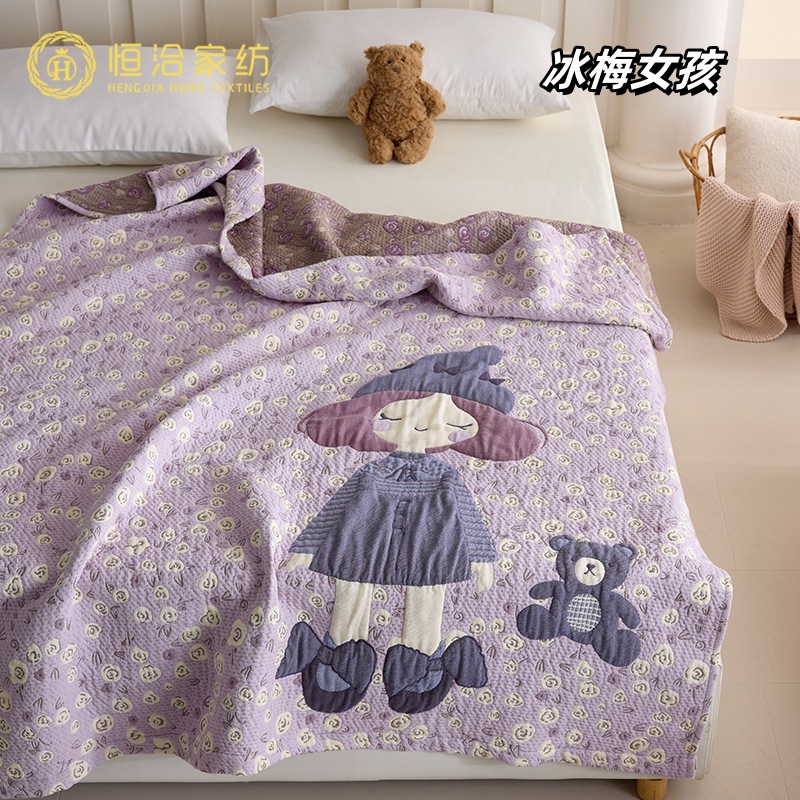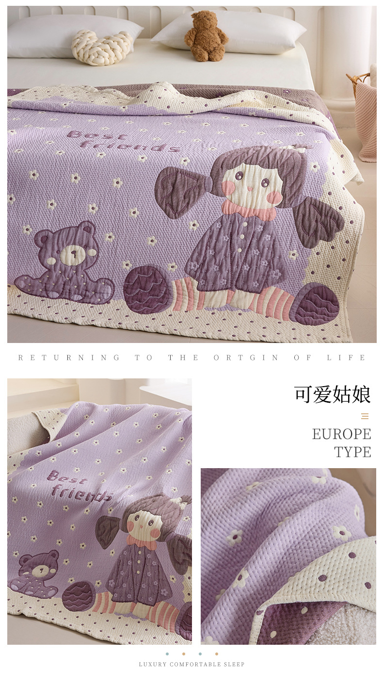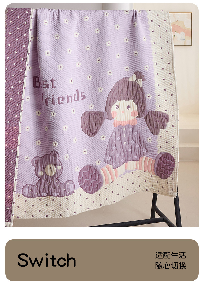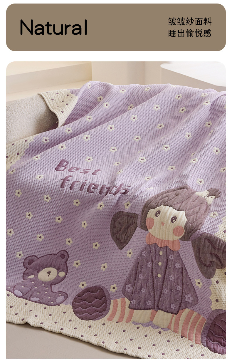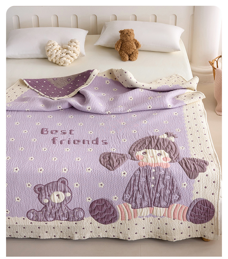 만화 스타일 코튼 주름 소파 침실 담요 귀여운 자수 캐주얼 사무실 낮잠 에어컨 담요 보라색