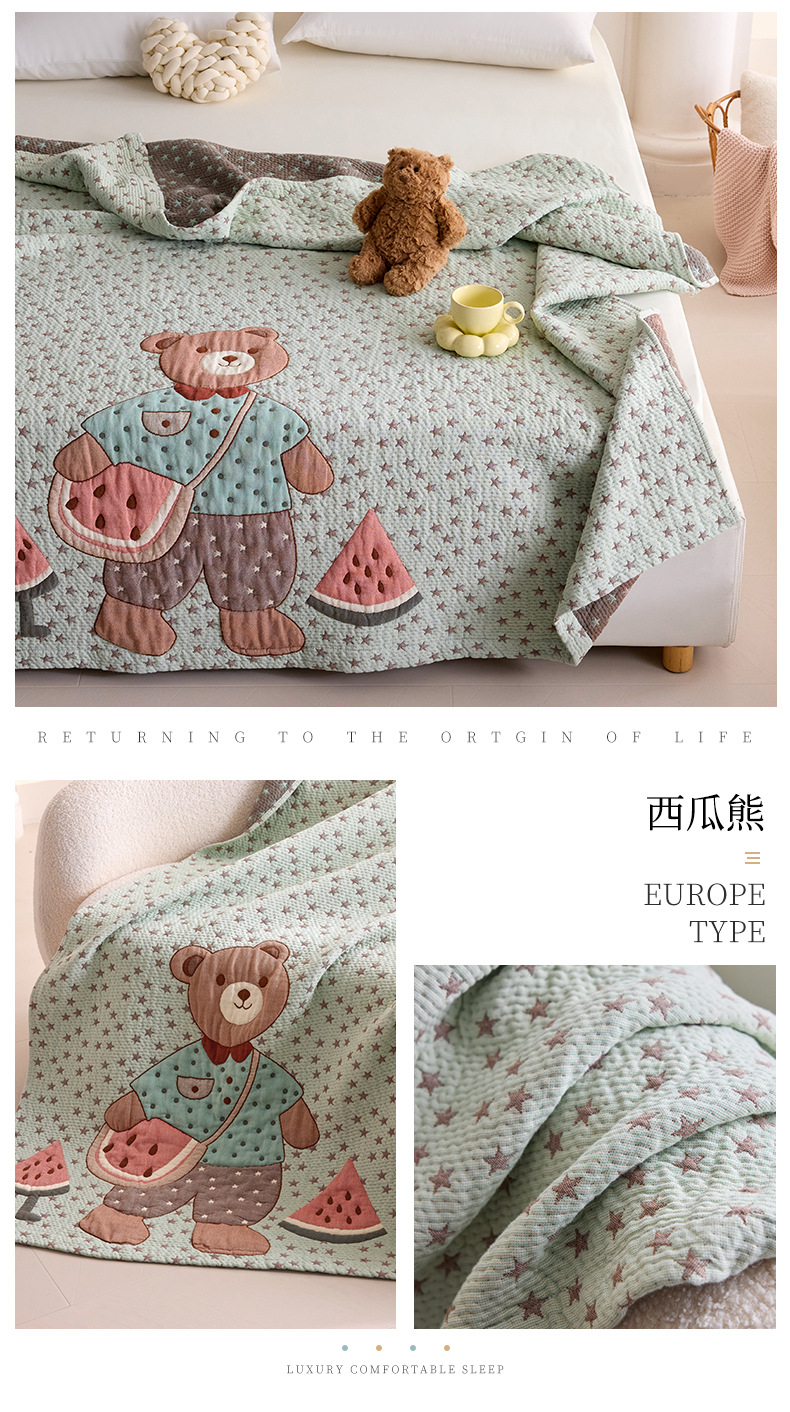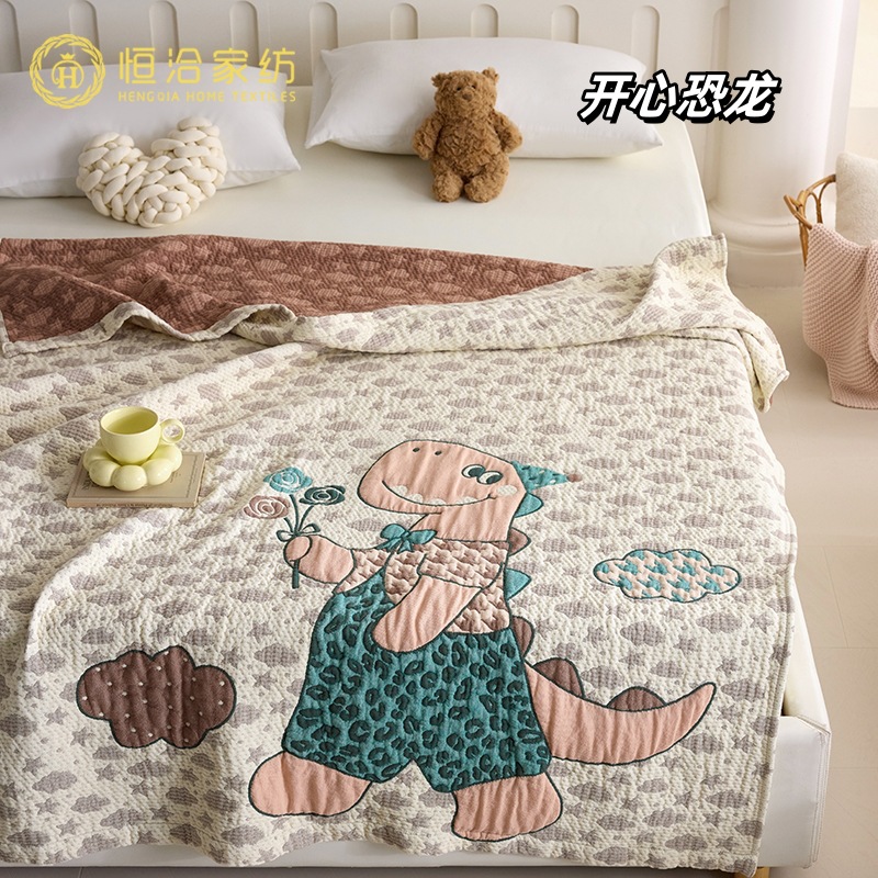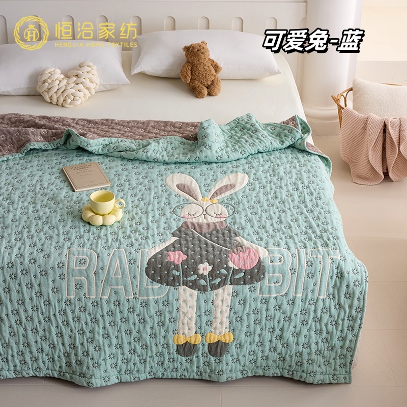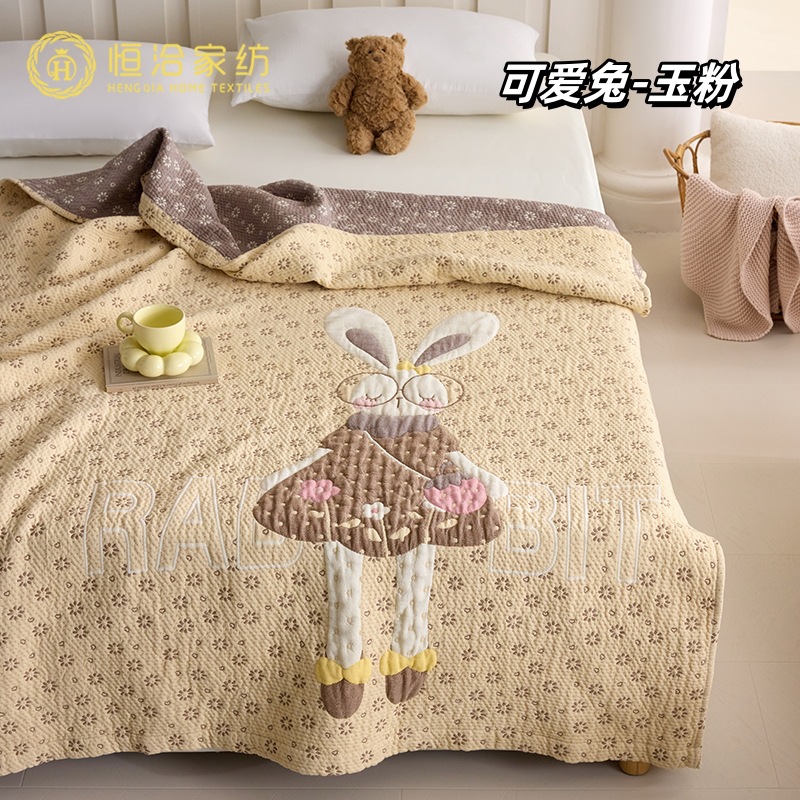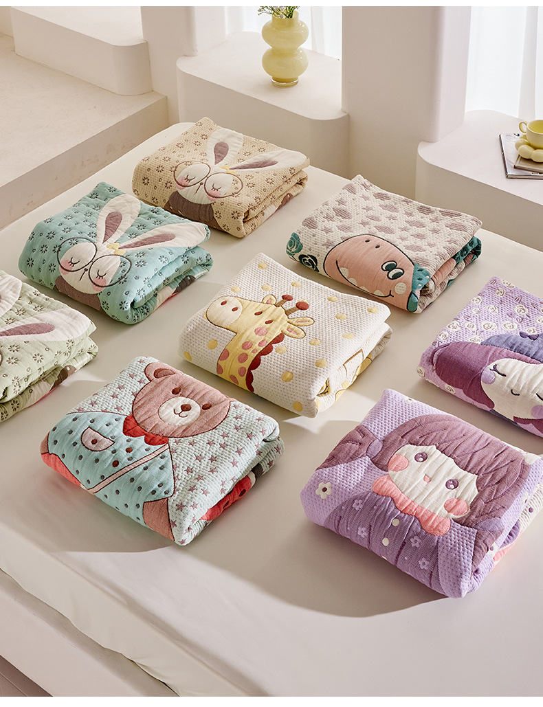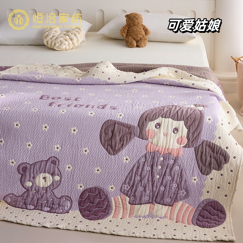 만화 스타일 코튼 주름 소파 침실 담요 귀여운 자수 캐주얼 사무실 낮잠 에어컨 담요 보라색