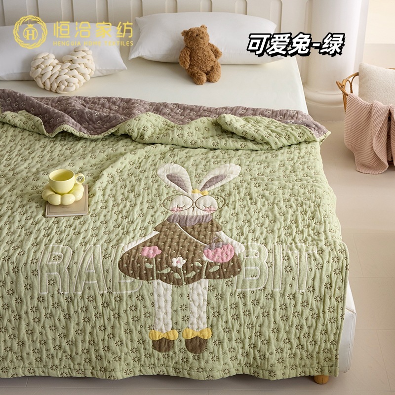 • AEW 면 주름 거즈 - 귀여운 토끼 - 그린