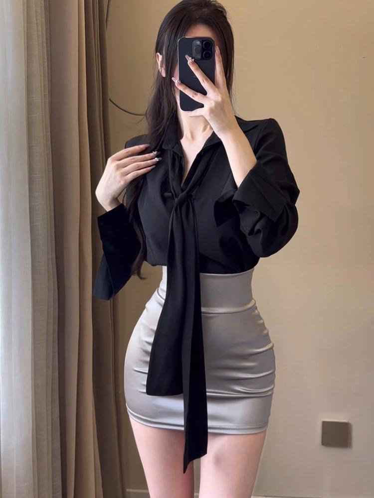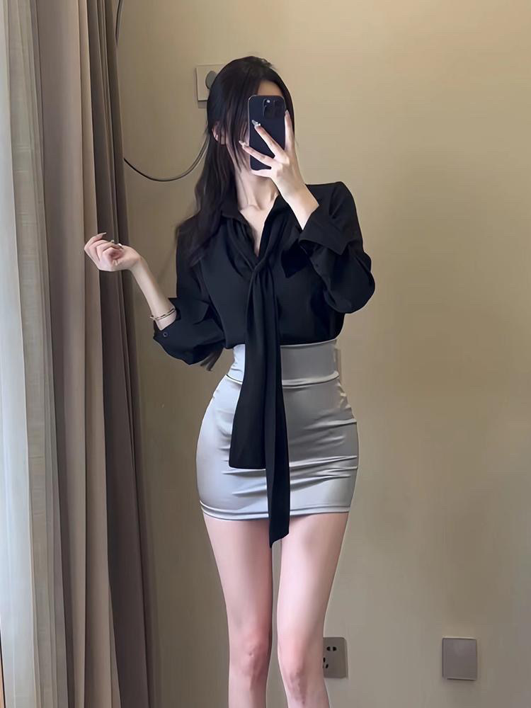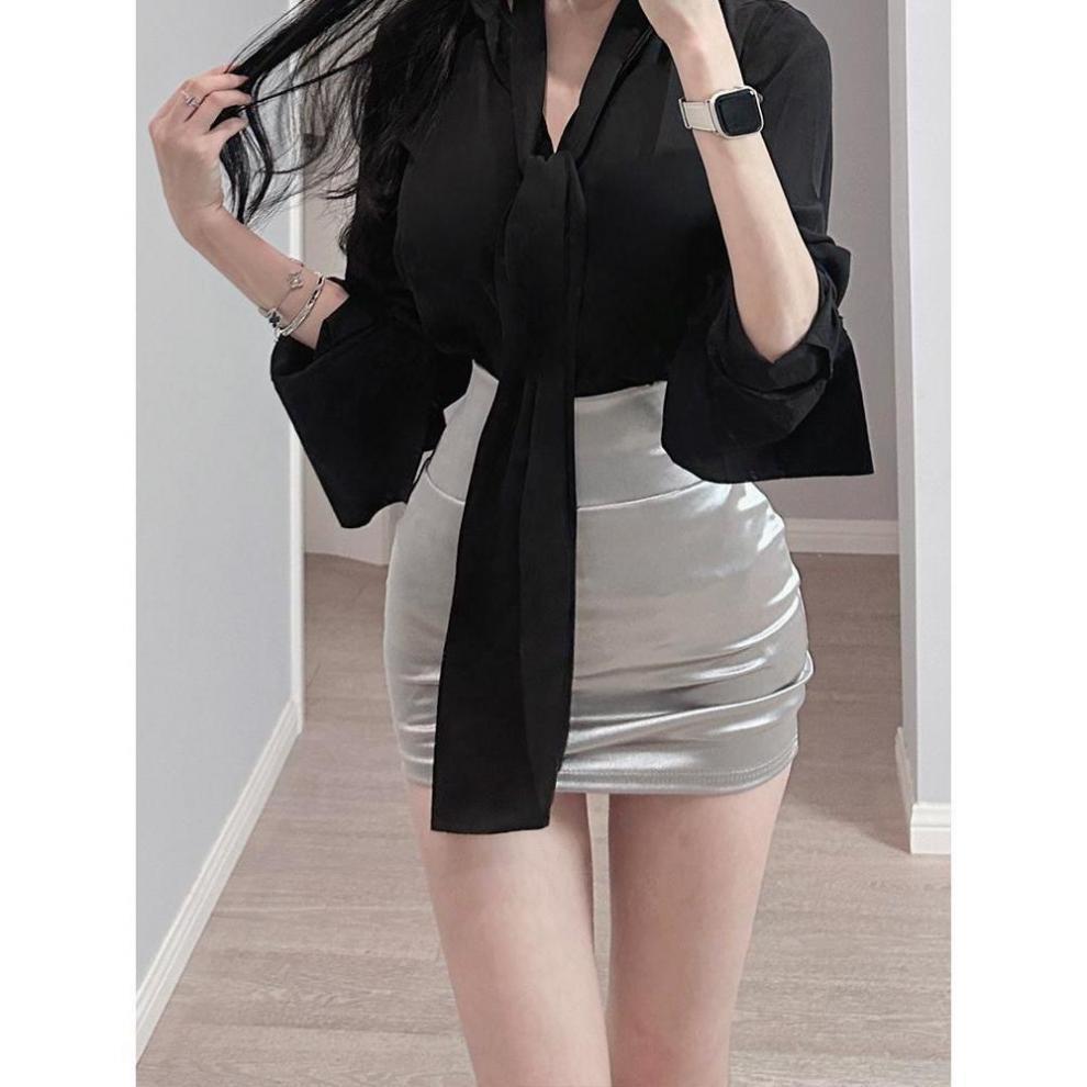 질감이 있는 반짝이는 짧은 스커트, 실키한 짧고 타이트한 슬림핏의 새로운 하이웨이스트 스커트, 다재다능하고 슬림한 핫걸 힙 스커트