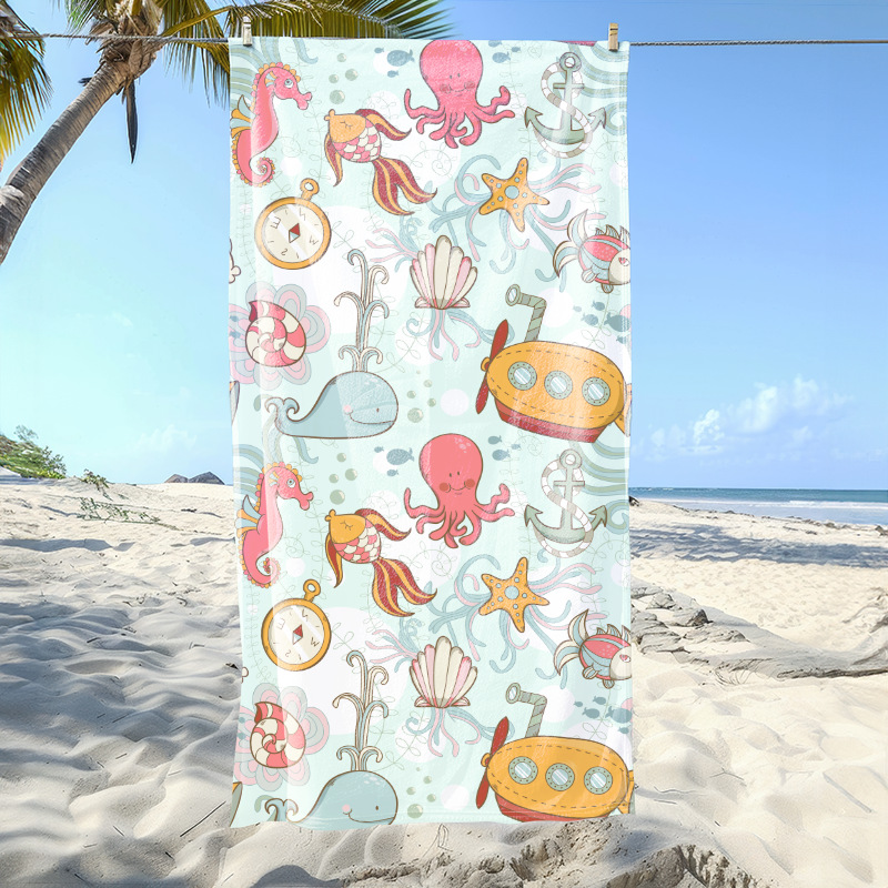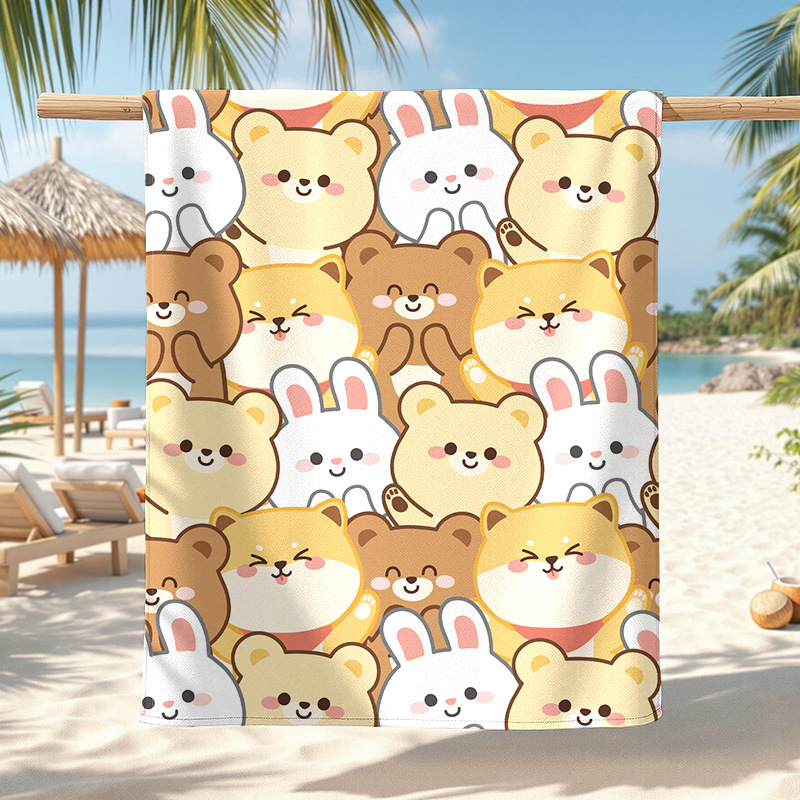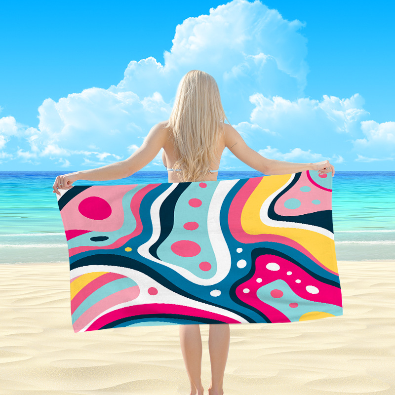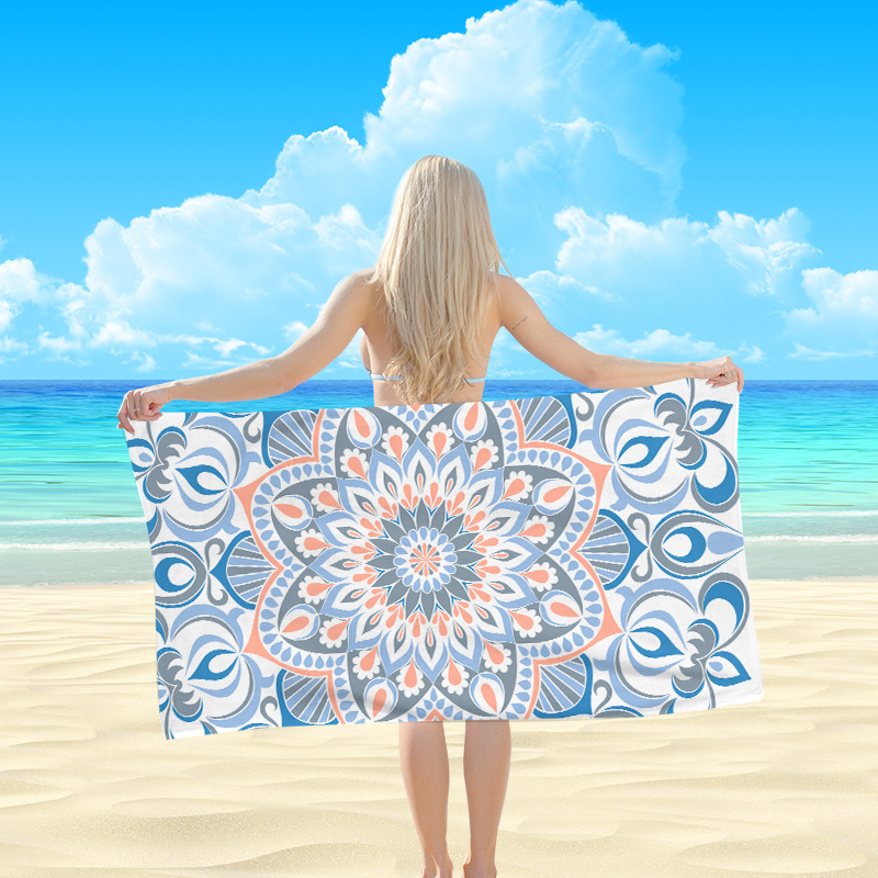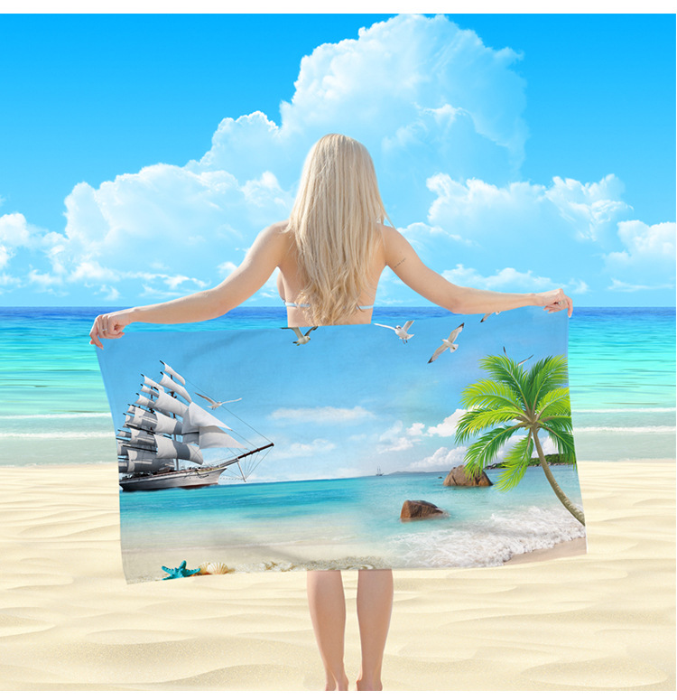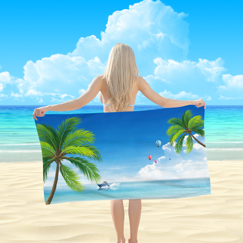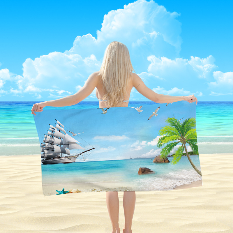 유럽과 미국의 국경 간 마이크로 화이버 비치 타월 JIT 세대 헤어 맵 맞춤형 인쇄 흡수성 빠른 건조 수건 목욕 타월